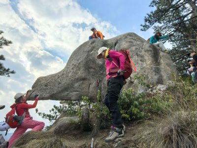 山脊上散落“河马石”、“猪鼻头”、“犀角石”、“石粽子”等等,各种像形石,维妙维肖。