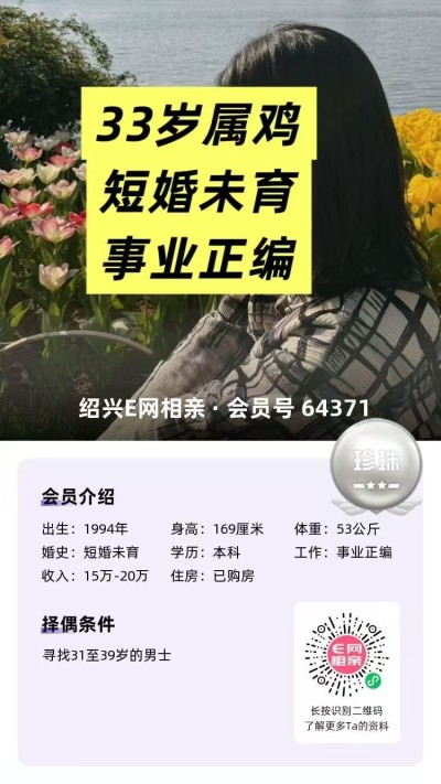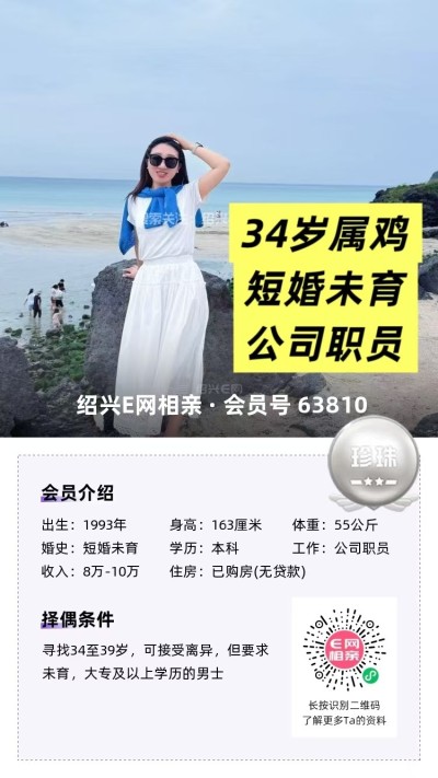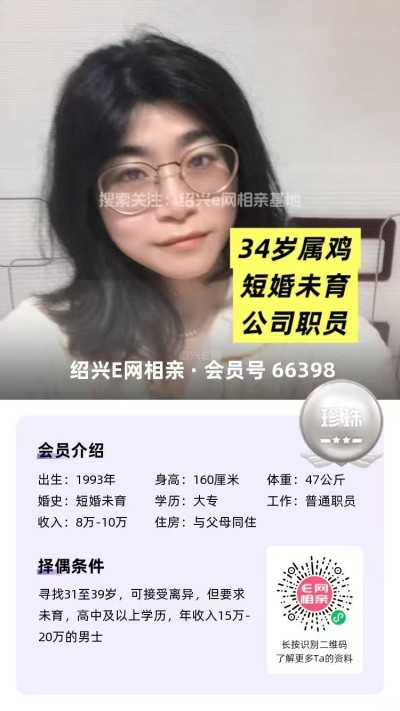 36岁以下,未婚或短婚未育,身高170+,大专以上,外形干净清爽,有独立婚房,真诚开朗有担当的绍兴本地男生。
