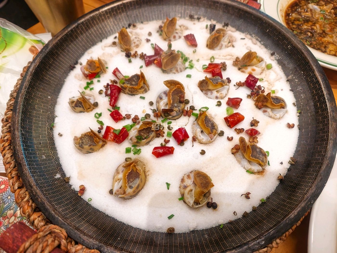 盐焗花螺是全场唯一一个有热度,还正常的菜,可能不需要什么技术。