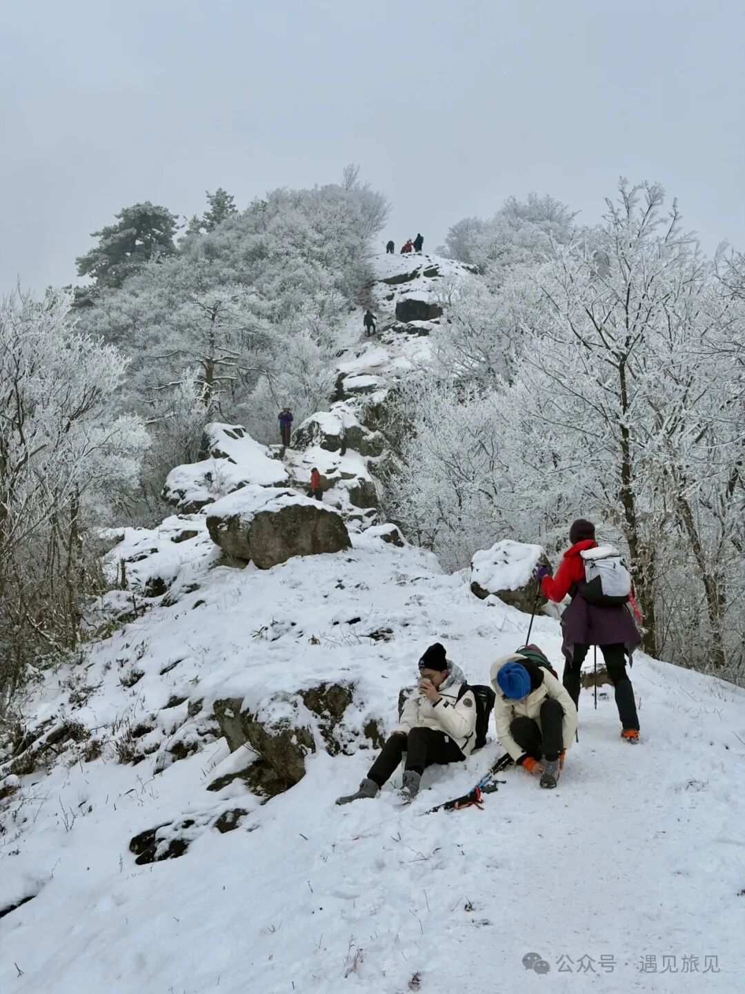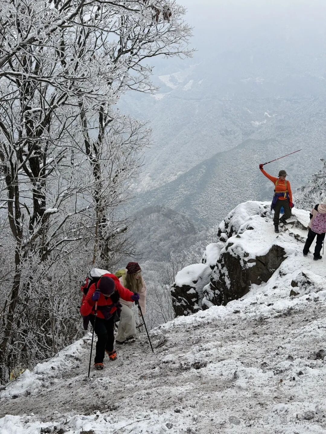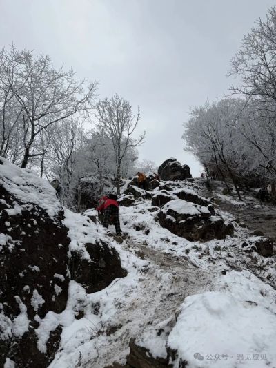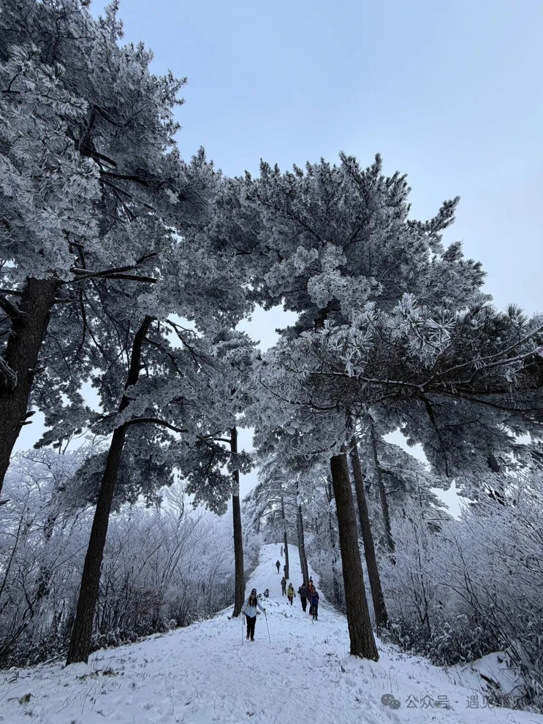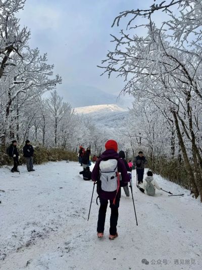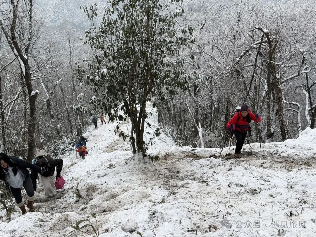 登雪后的龙王山,我觉得穿红色衣服最显眼,宛如雪后的红梅,花蕊在雪花的包裹中,晶莹欲滴。
