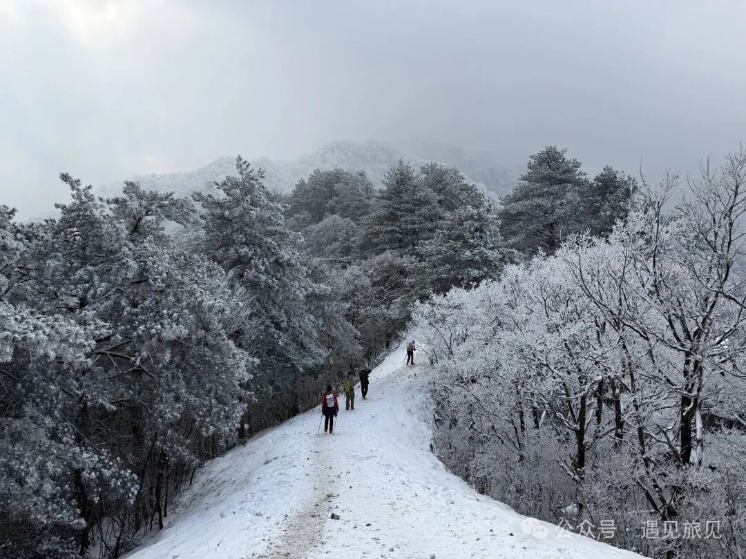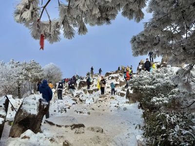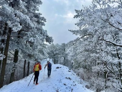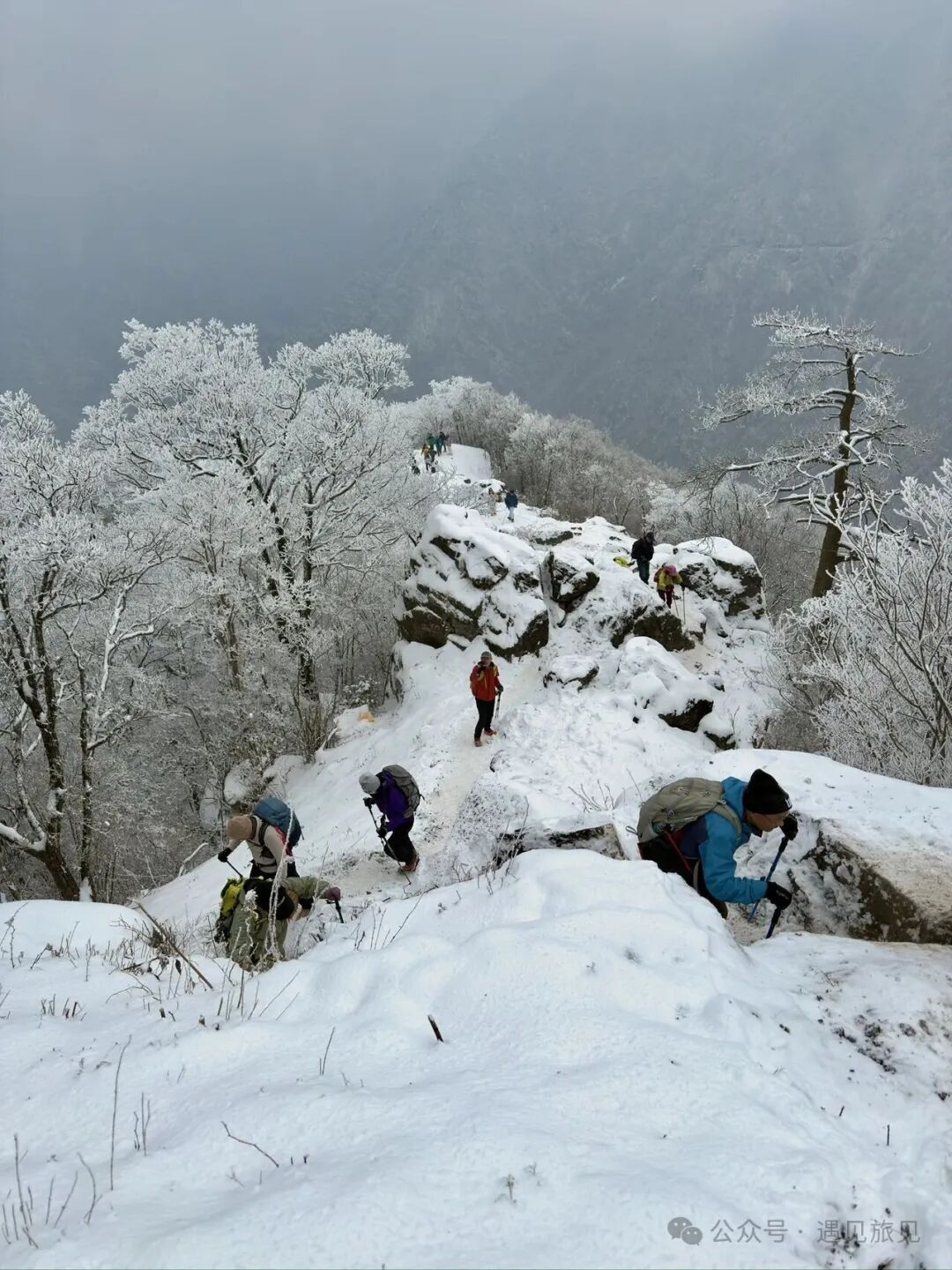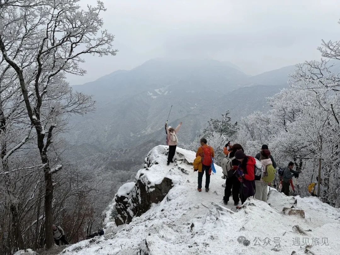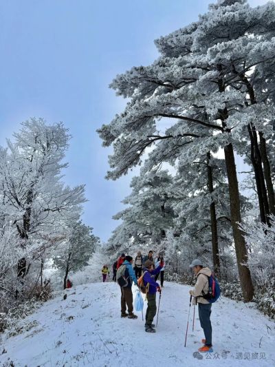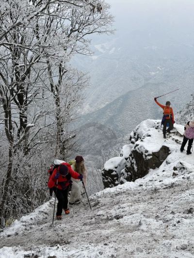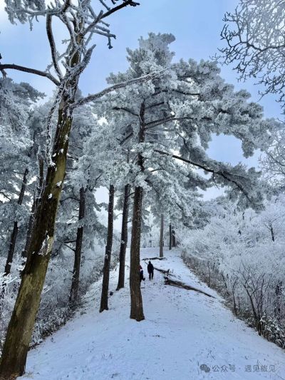 登雪后的龙王山,我觉得穿红色衣服最显眼,宛如雪后的红梅,花蕊在雪花的包裹中,晶莹欲滴。