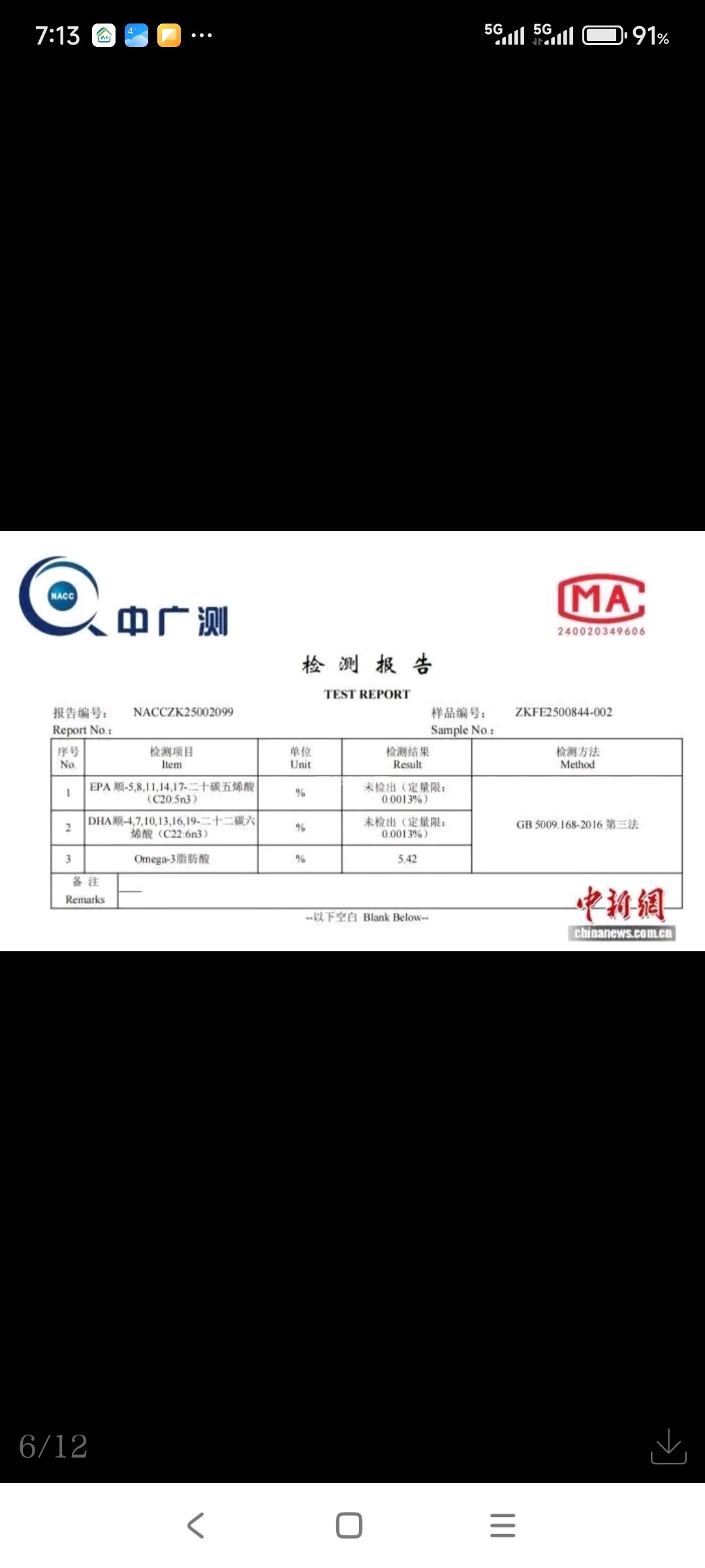 中国广州分析测试中心检测报告表明,产品名为“Drwissth”的鱼油凝胶糖果,商家宣称每粒鱼油净含量为700毫克,其中EPA180毫克、DHA120毫克,实测结果却是EPA和DHA均未检出,Omega-3含量5.42%。