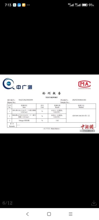 另一家的权威第三方检测机构检测报告显示:产品名为“Moeok”的深海鱼油,实测结果为Omega-3含量5.06%,EPA含量0.0178%,DHA含量未检出。而商家宣称该鱼油每粒净含量为700毫克,其中EPA180毫克,DHA120毫克(Omega-3为300毫克)。