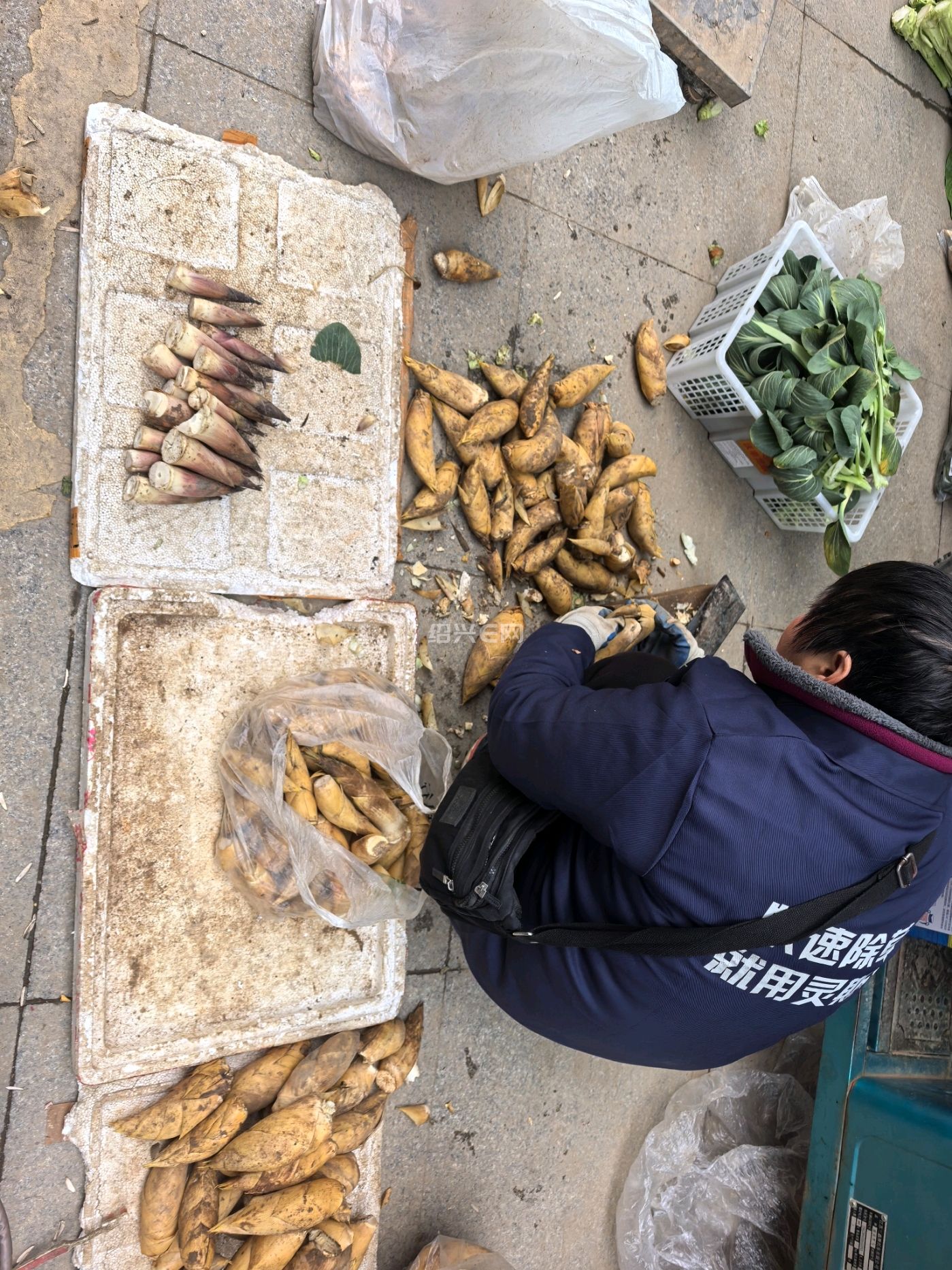 这笋,就她一摊,笋的外壳就与众不同,晚上蒸着吃了,甜梗梗的,从来没吃过,好笋。