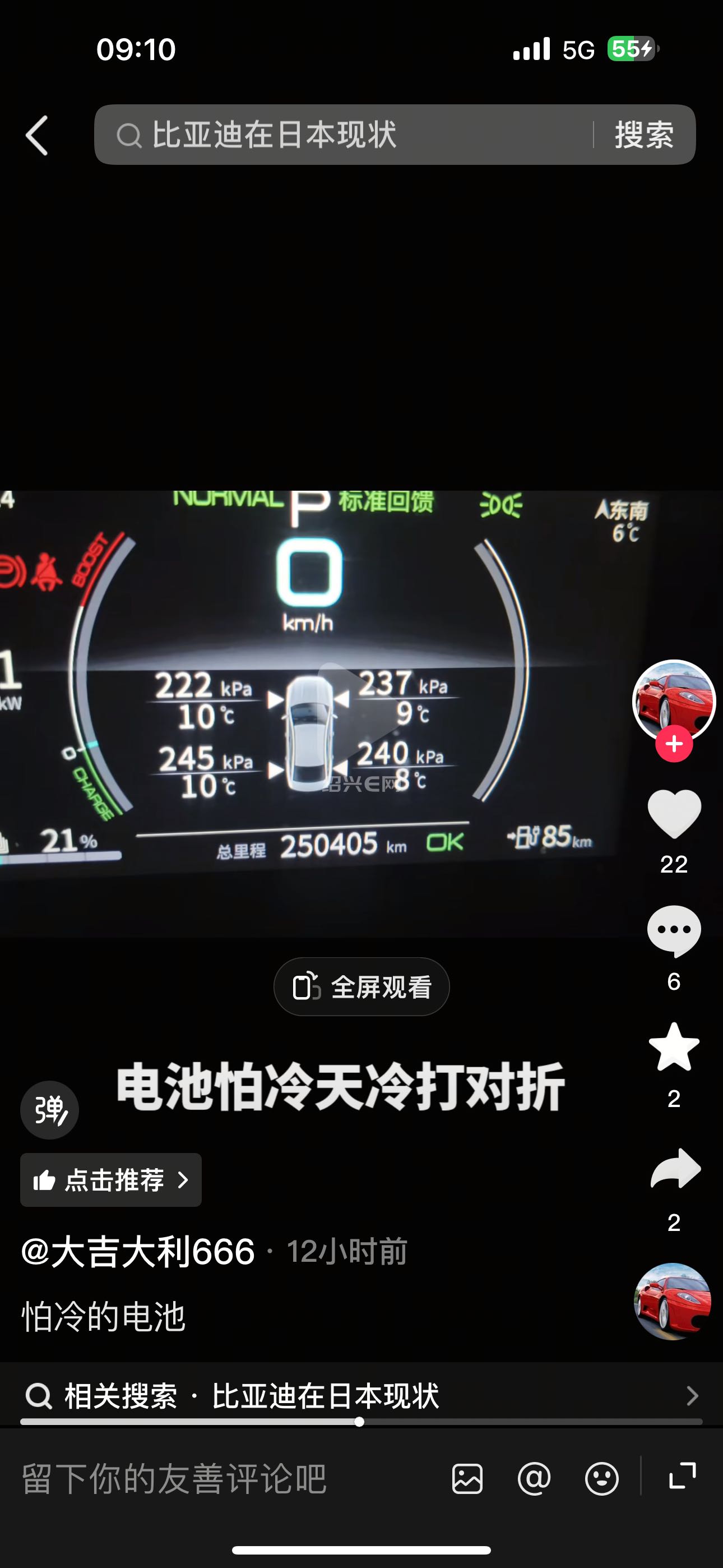 比亚迪电车怕冷的电池,续航直接打对折,充满475公里,跑了187公里,剩下只剩85公里了,这公里还不上高速,上高速开100码以上掉电更历害,不过话又说回来这公里数如果加油的确又有一辆新车可买了,天冷上高速还是一辆丰田油车放心。