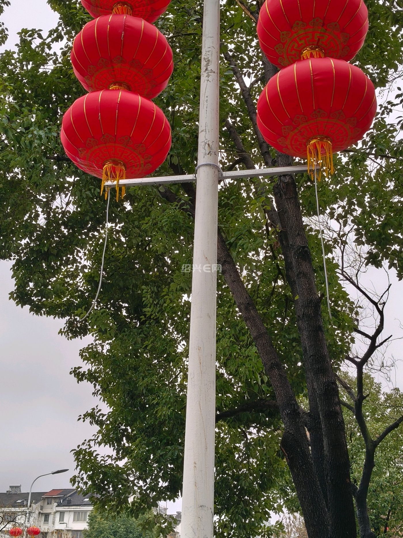 灵芝街道后墅路这边马路两边的大红灯笼巳经挂起来了!