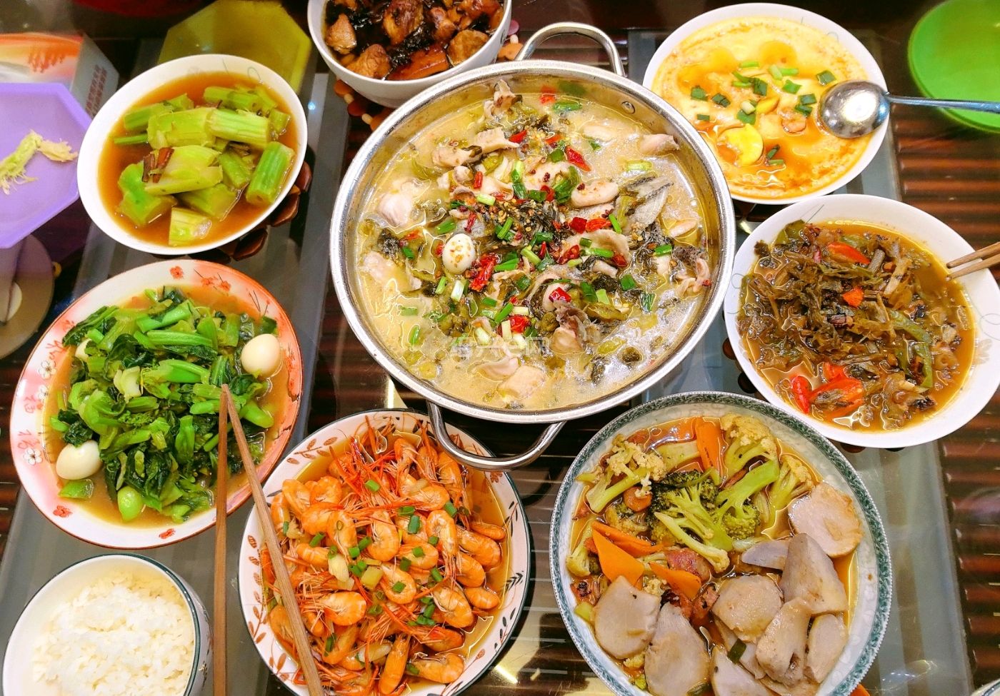 这么多人吃吗。有了酸菜鱼还有这么多菜啊