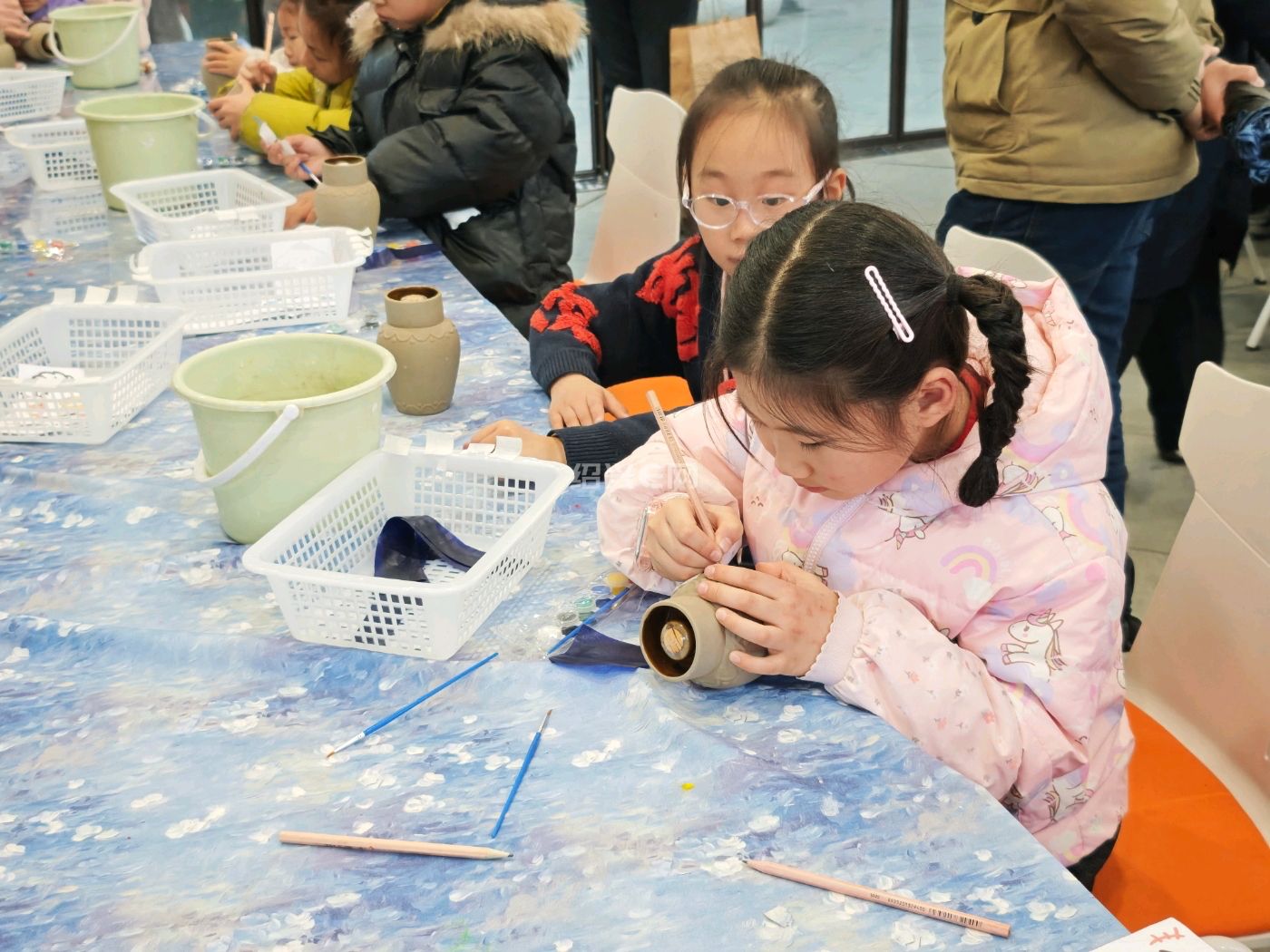 最令人期待的花雕彩绘环节如期而至。在老师傅指导下,孩子们拿起画笔,将童真创意倾注于素白酒坛。有的绘上吉祥花纹,有的画上江南水乡,还有的写下“酒香绵长”的字样,原本朴素的酒坛瞬间变成独一无二的艺术品。“我要把这个酒坛送给爸爸妈妈,告诉他们黄酒的故事!”一位同学捧着作品兴奋地说。