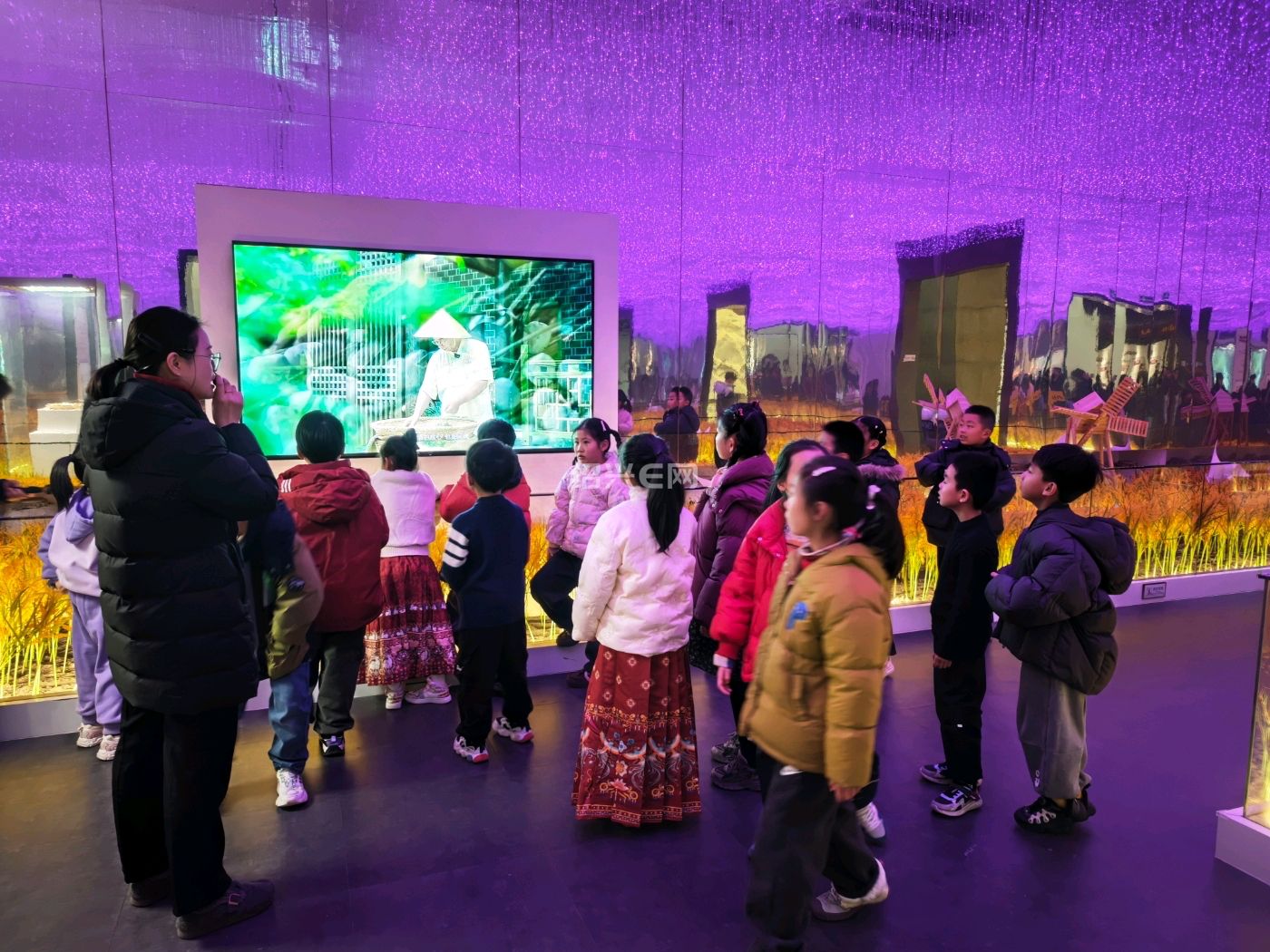 踏入博物馆地下酒窖,近万坛珍藏黄酒整齐排列,浓郁的酒香扑面而来。孩子们踮起脚尖,好奇地打量着古朴的酒坛,当得知其中不乏数十年陈酿,且黄酒酿造历史可追溯至大禹时期,相传由仪狄总结古法酿造而成时,纷纷发出惊叹。讲解员用生动的语言,结合实物展示,为孩子们讲述了“浸米、蒸饭、发酵”等传统工序,让他们了解到黄酒与越地文明的深厚渊源。