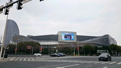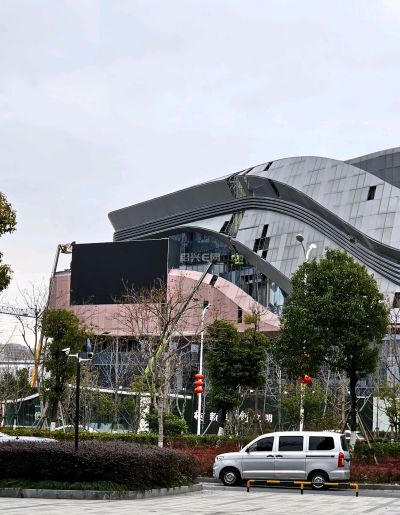 苏宁广场外立面有两个大屏,一个宽大边框适配外立面整体造型,一个无边框在主入口,非常不错。