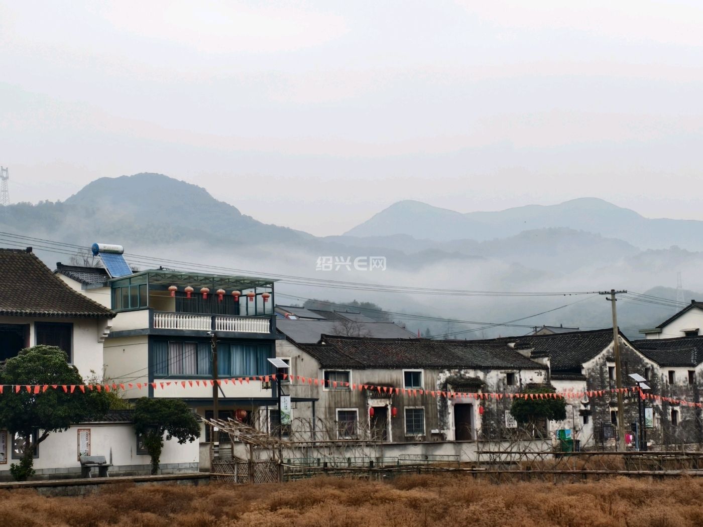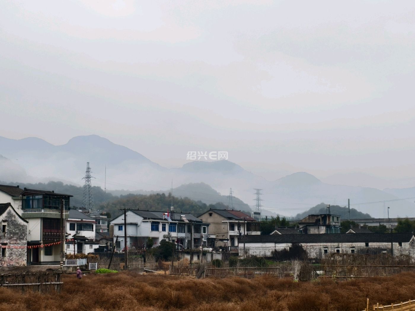 如果没有那几根电线和杆,真的是水墨画。