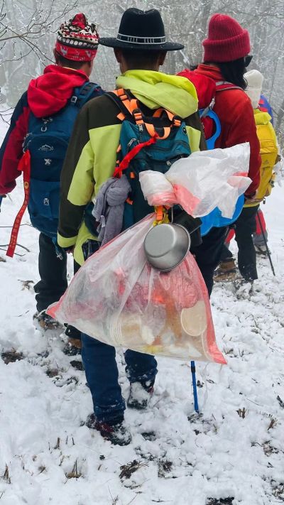 本次线路里程8公里,用时6小时,难度2星,强度3星,雪景5星,由绍兴相约户外一行76人踏雪而行。