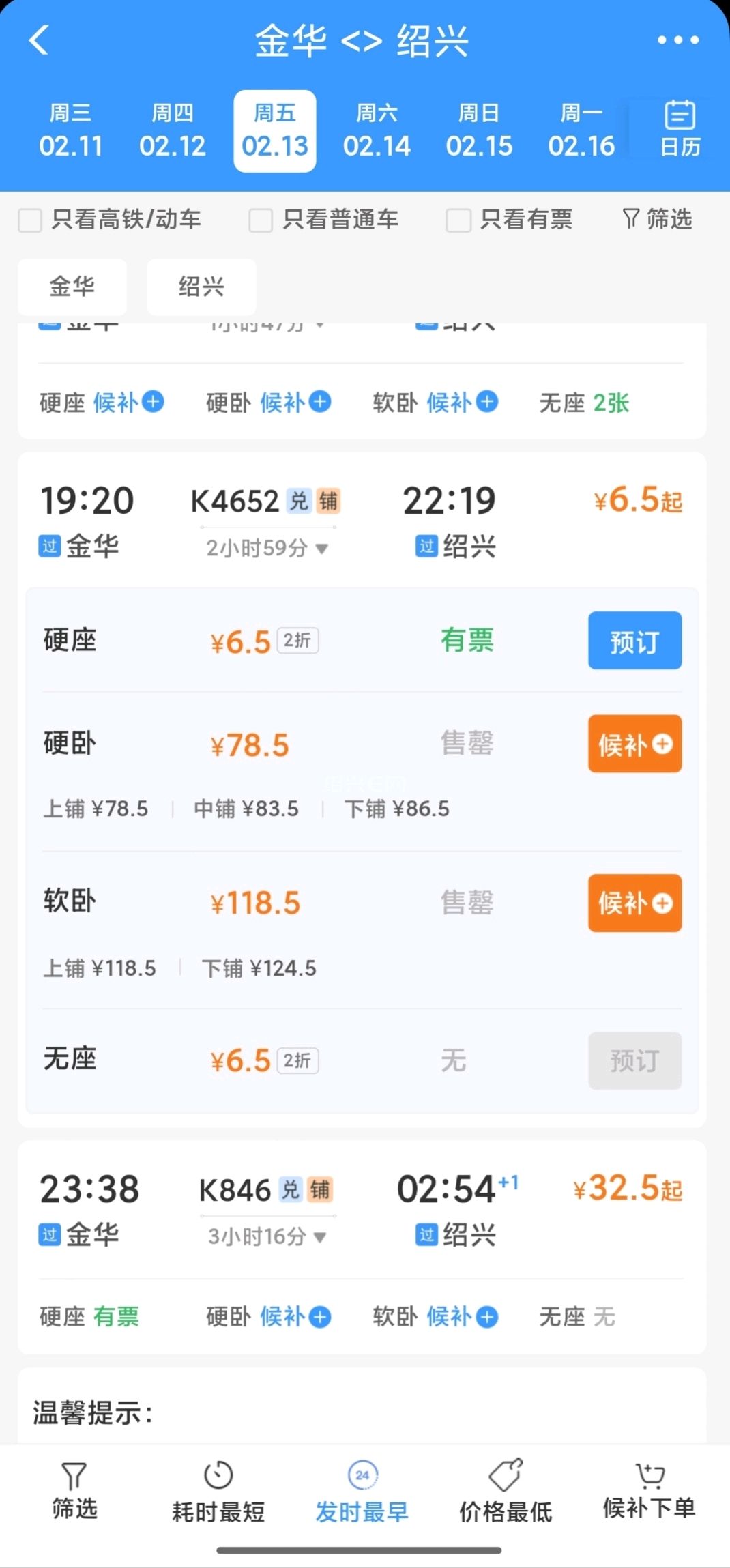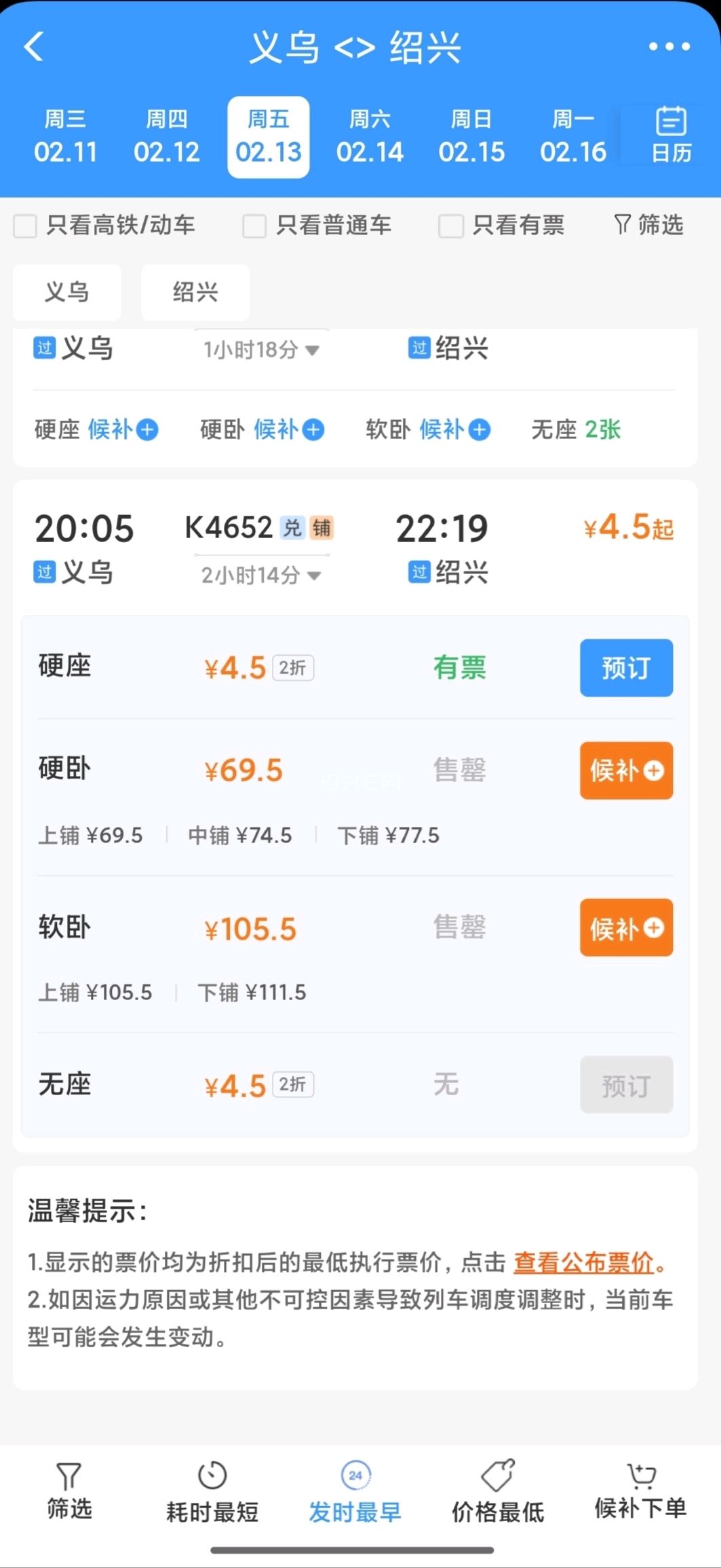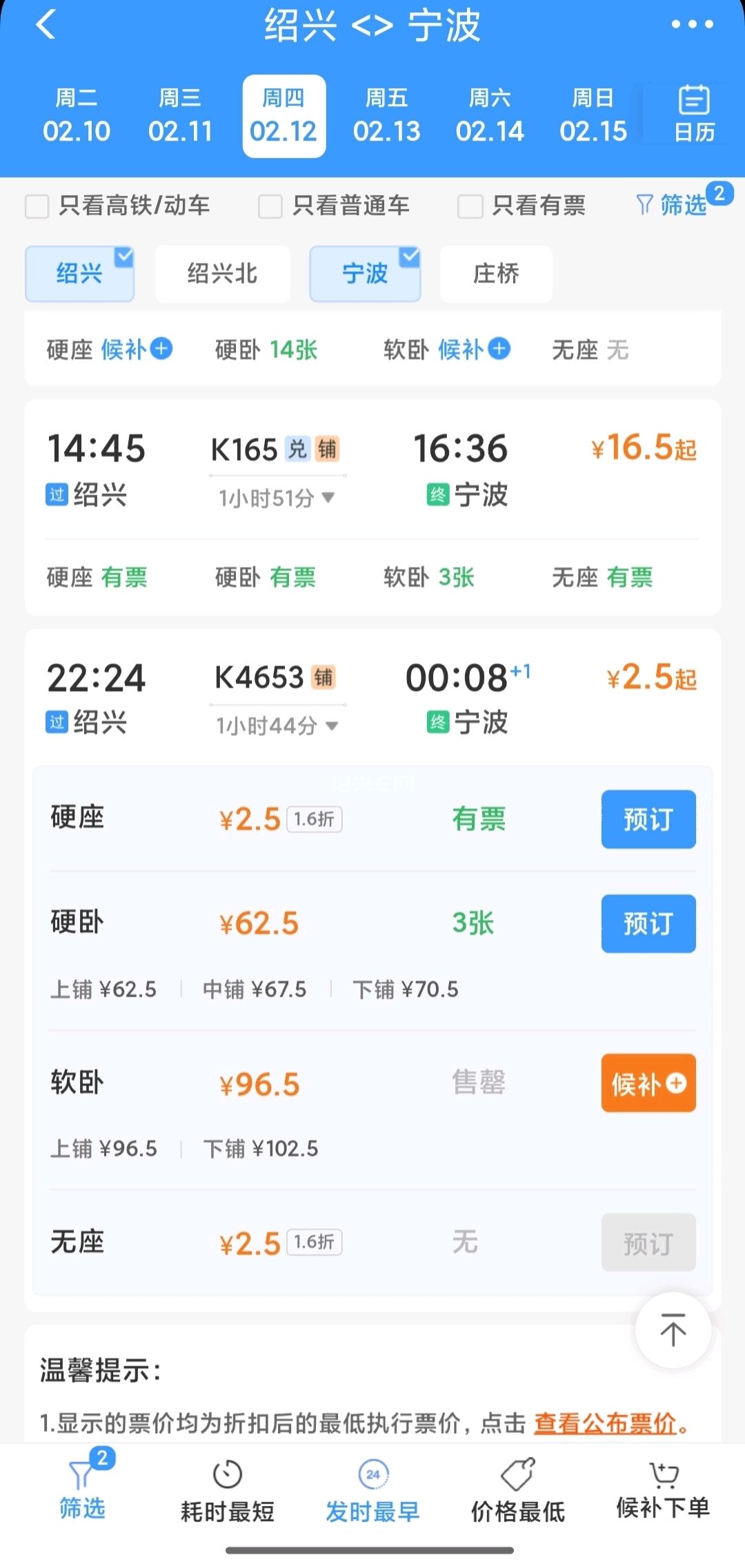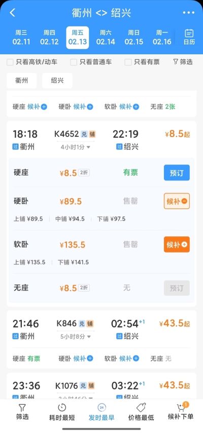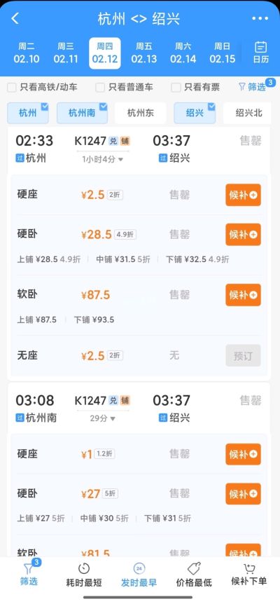 K1247杭州(城站)→绍兴(城北桥)2.5元,杭州南→绍兴1元(想薅这个羊毛的,赶紧提交候补)