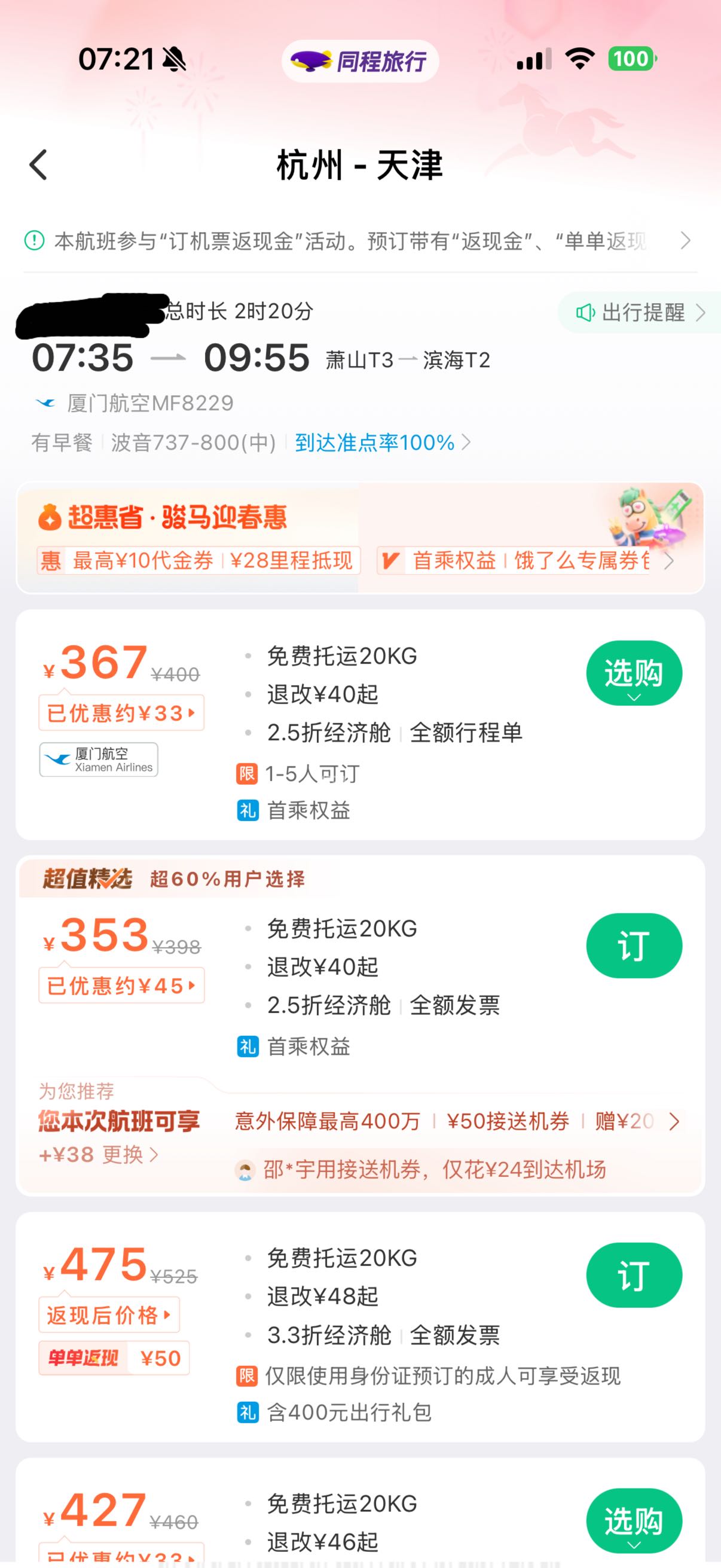 :估计是你看到300多元的是纯票价没有加机场建设费,但买票时是两个部分组成:票价+机场建设费,所以要400多了。但确实那些隐藏的附加保险等费用是平台加上去的。(2026-02-03 08:15)
