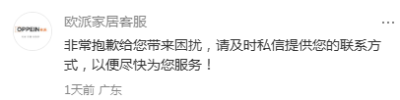 欧派官方的客服已经关注到柯桥欧派跑路事件,应该会出面售后
