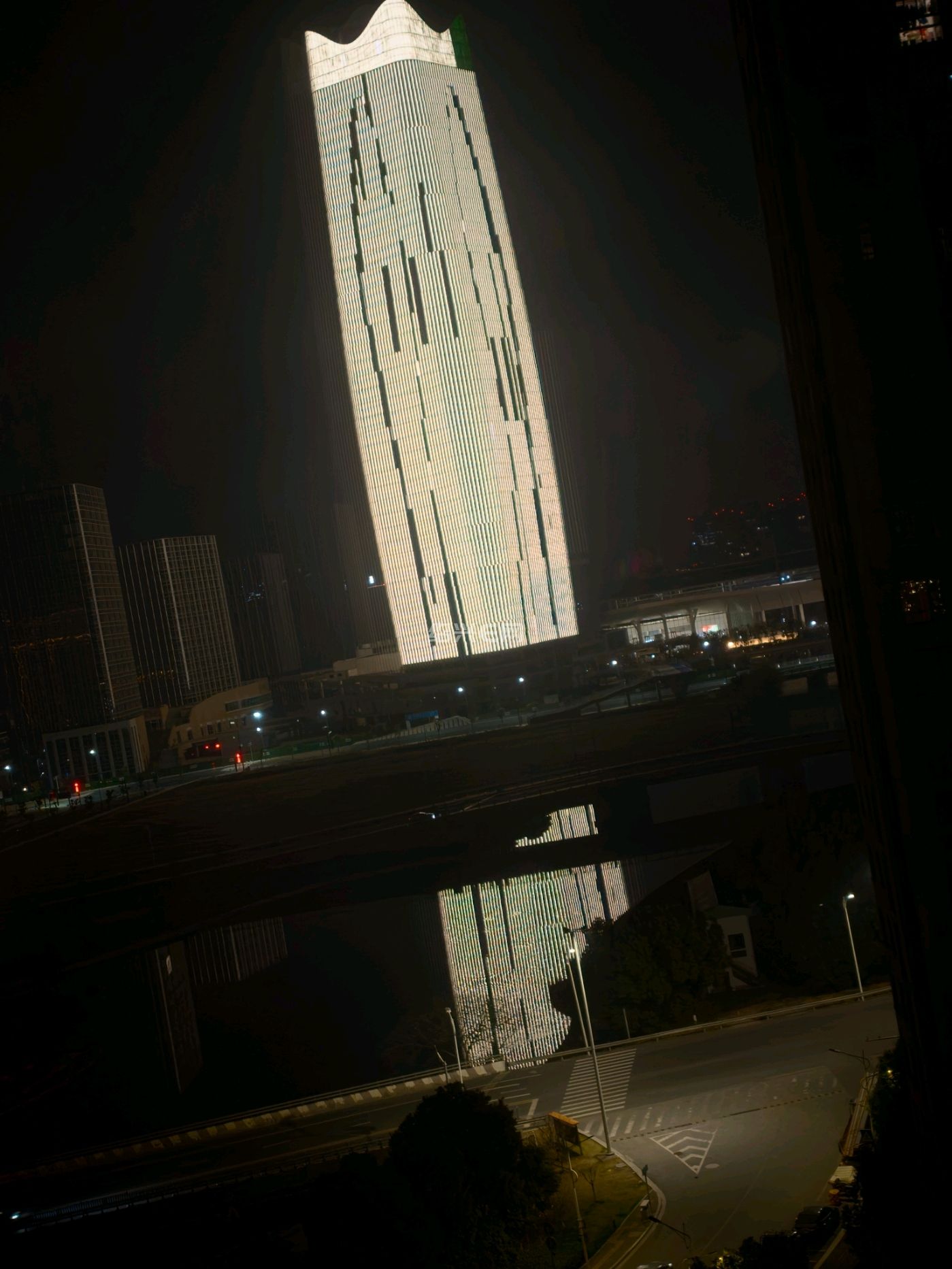 楼顶像戴了一顶皇冠,亮灯后挺好看的。