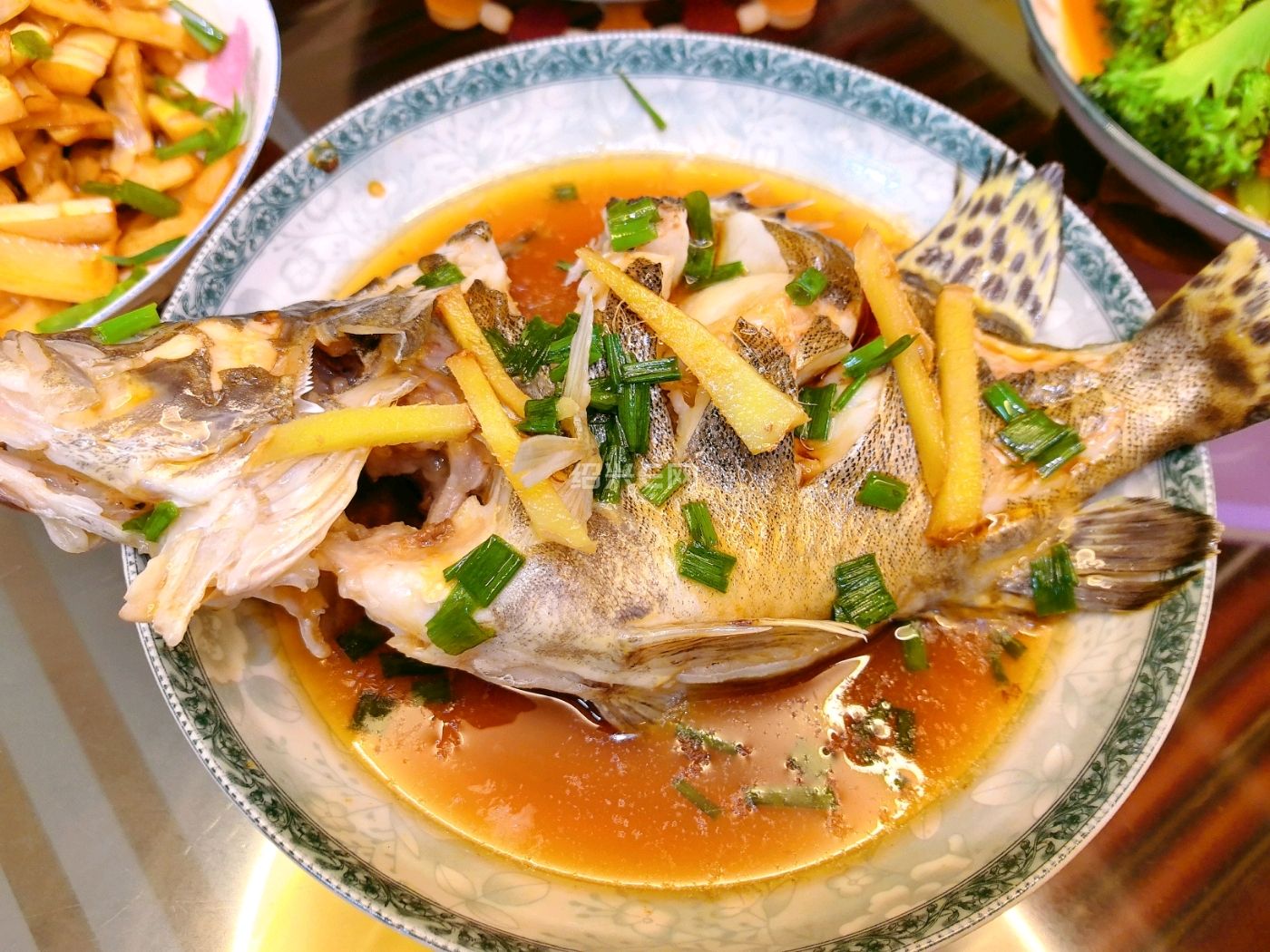 今日晚餐:葱油鳜鱼+大猪蹄子