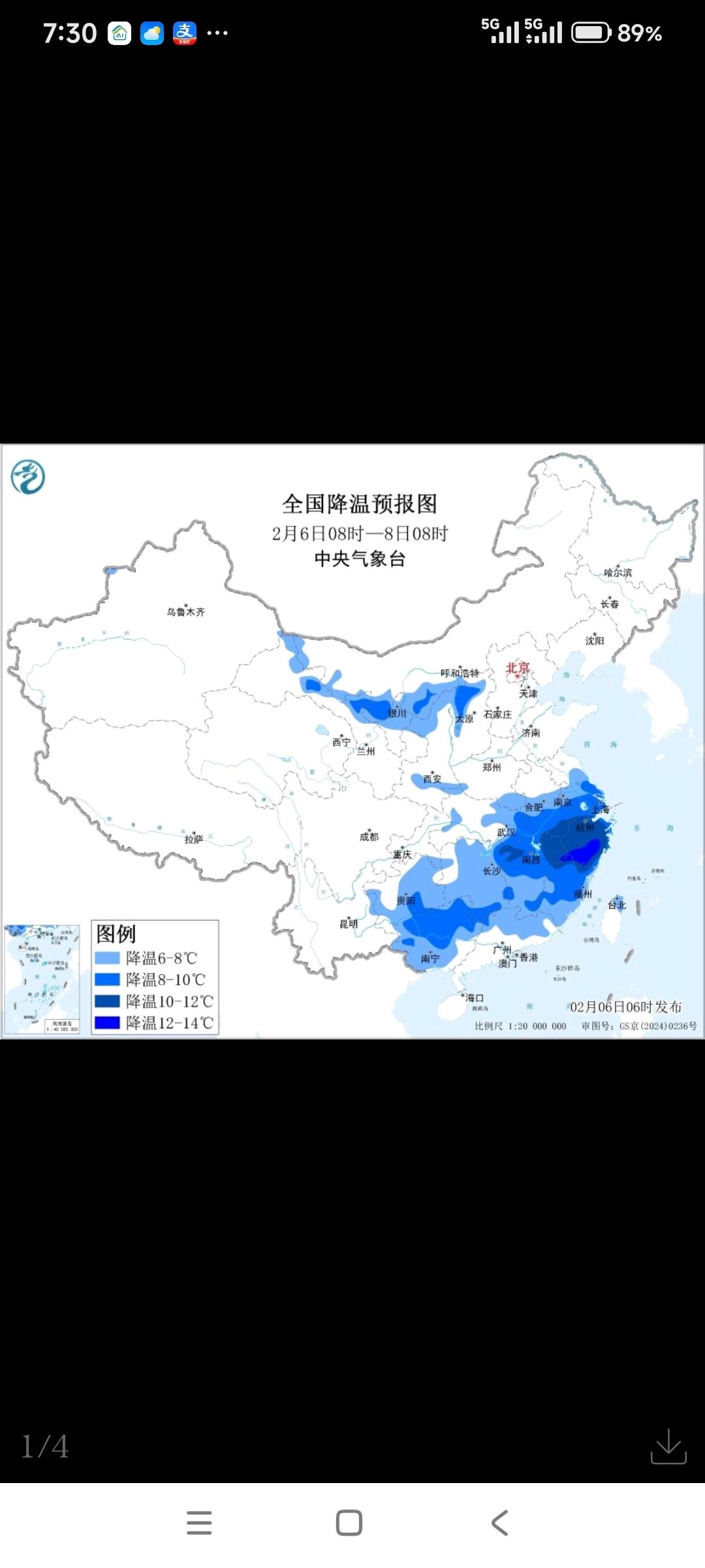 中央气象台2月6日06时继续发布寒潮蓝色预警: