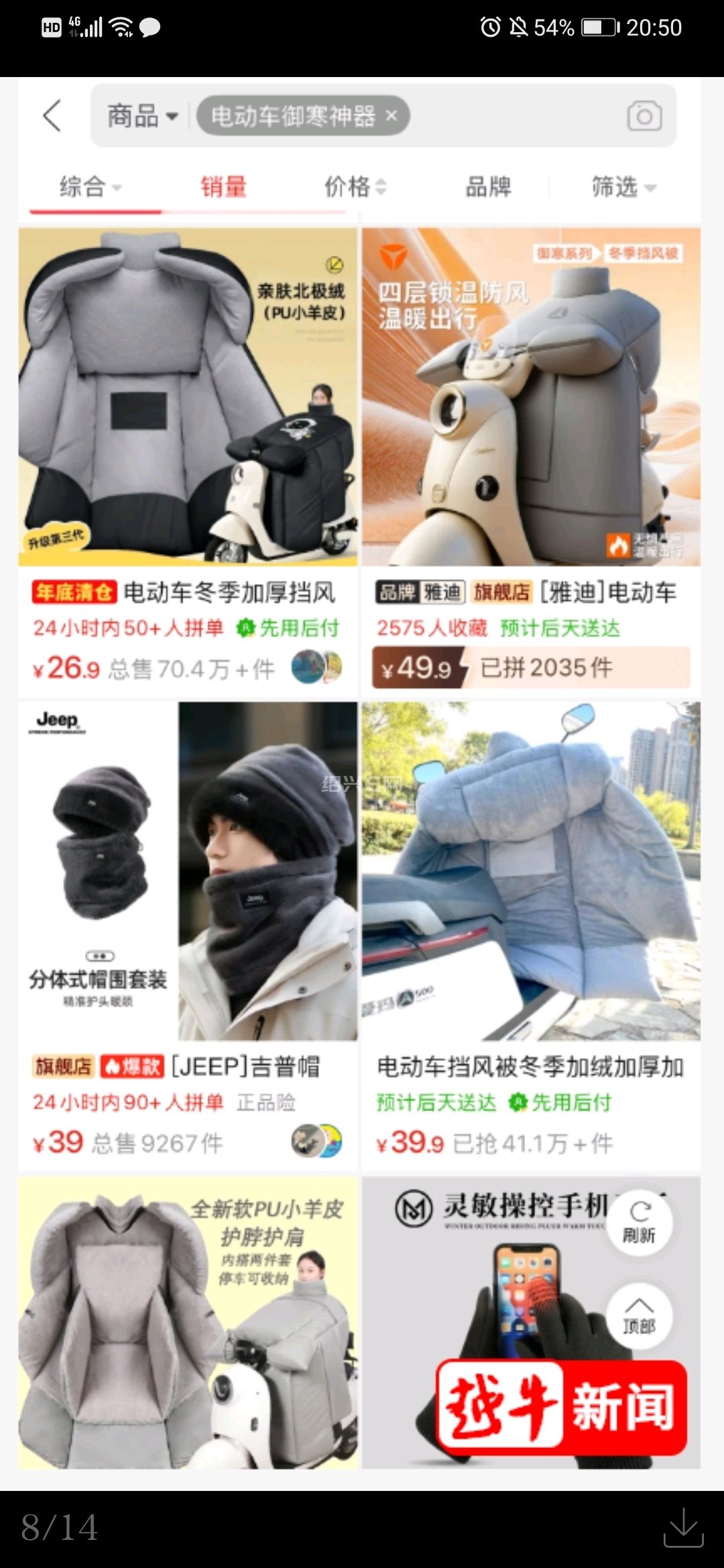 在多个购物网站,记者也发现,这类电动自行车“御寒神器”销量都十分可观。在某网站内,一款售价26.9元的加大加厚加绒电动自行车挡风被,销量甚至超过70万件。