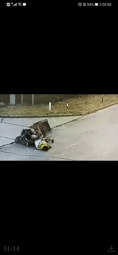 有市民晒出“挡风被”被前轮死死咬住。