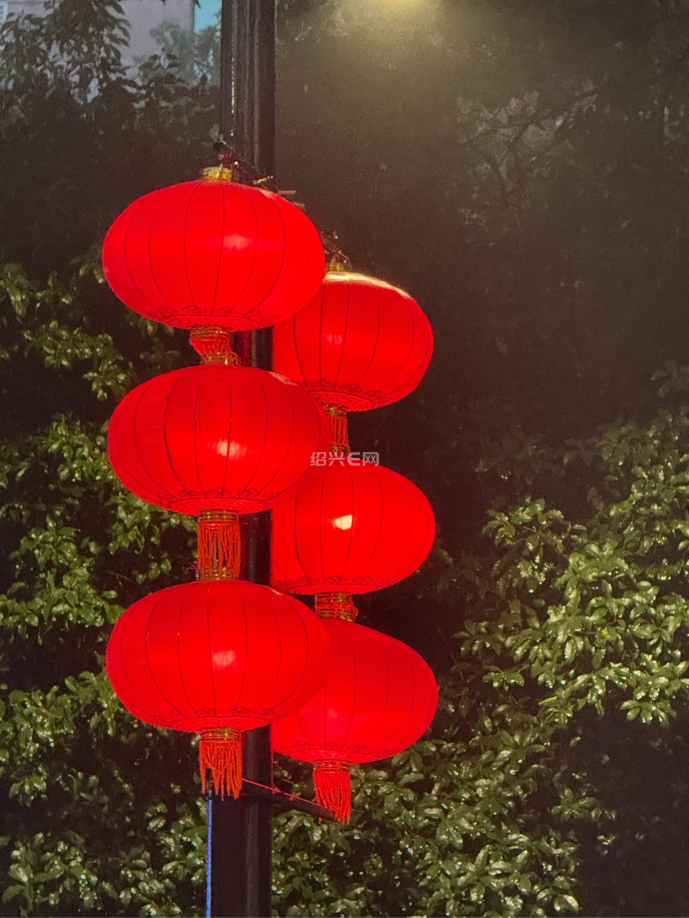 古城绍兴年味浓,街头挂满红灯笼。