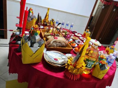 应该是请大菩萨,绍兴人最重要的事情,有鸡,白鲞,元宝肋,鹅,大小蜡烛,这个是荤请,还有一种是素请。