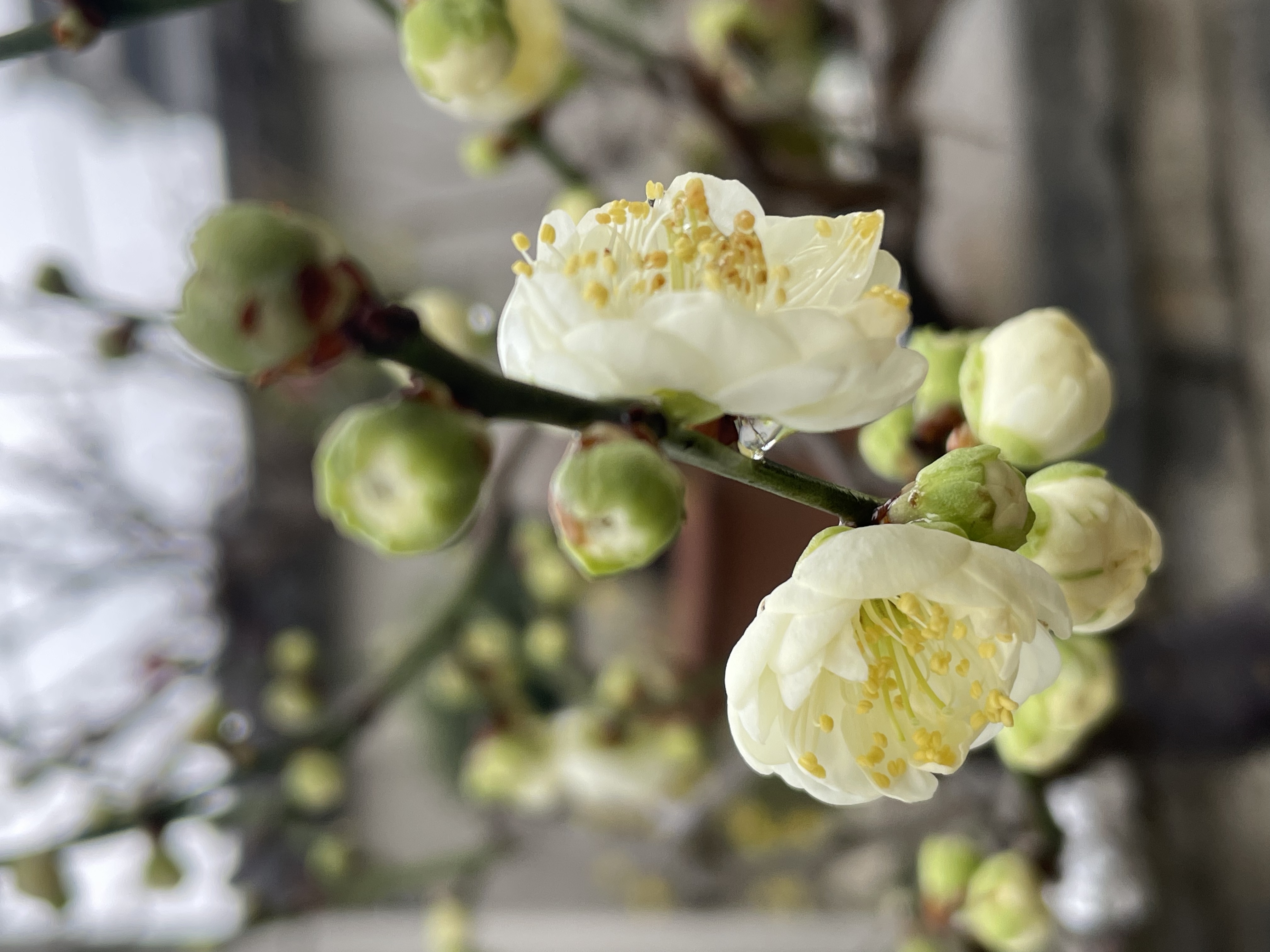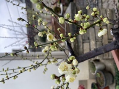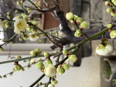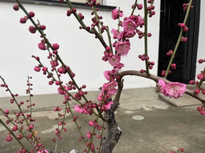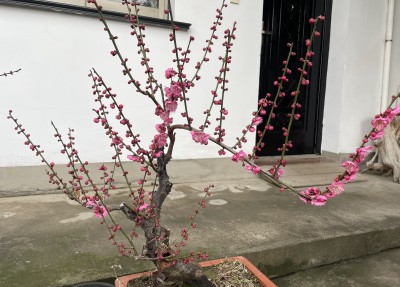 家里种了几盆梅花,有红须朱砂、绿萼、宫粉等,都开了