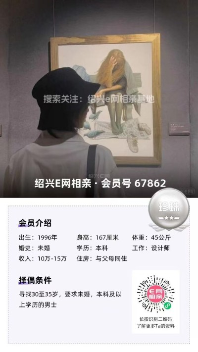 有点小宅,喜欢安静的氛围,也比较喜欢旅游,逛街等休闲方式,有点点理想主义。寻觅:32-38岁之间,情投意合的男生。