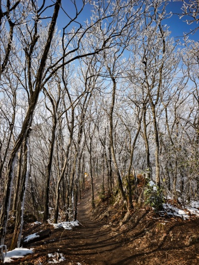 防滑与装备:冬季霜冻、落叶、偶有暗冰,路面异常湿滑。必须穿戴专业登山鞋,并强烈建议使用双登山杖。普通运动鞋极易滑倒。