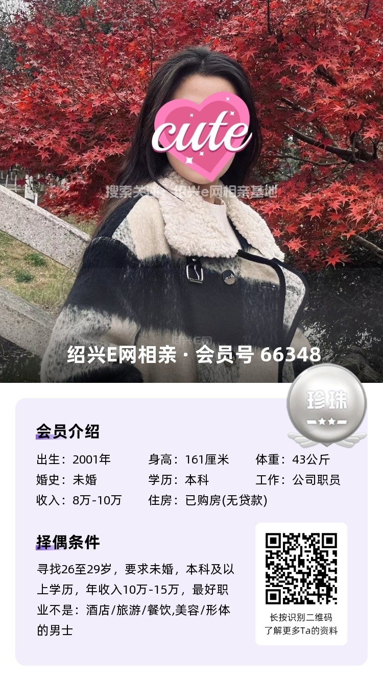 温馨和睦的家以下,本科及以上学历的未婚男生,想认识她可以私聊楚楚姐+66348