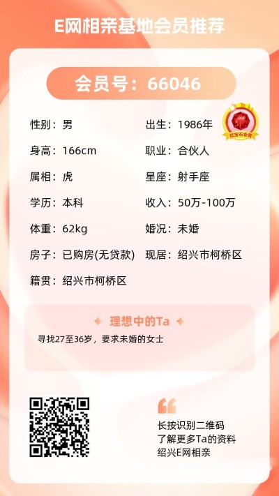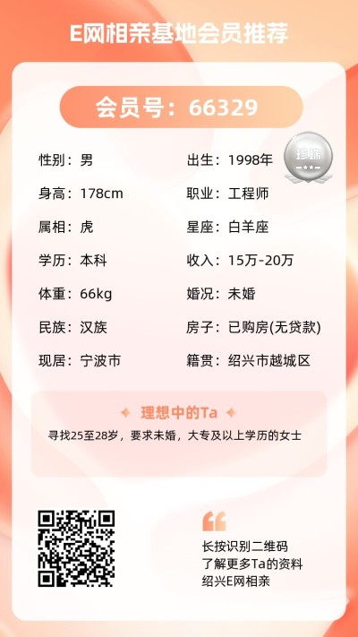 识别二维码可以查看会员的详细信息,合适联系红娘介绍。