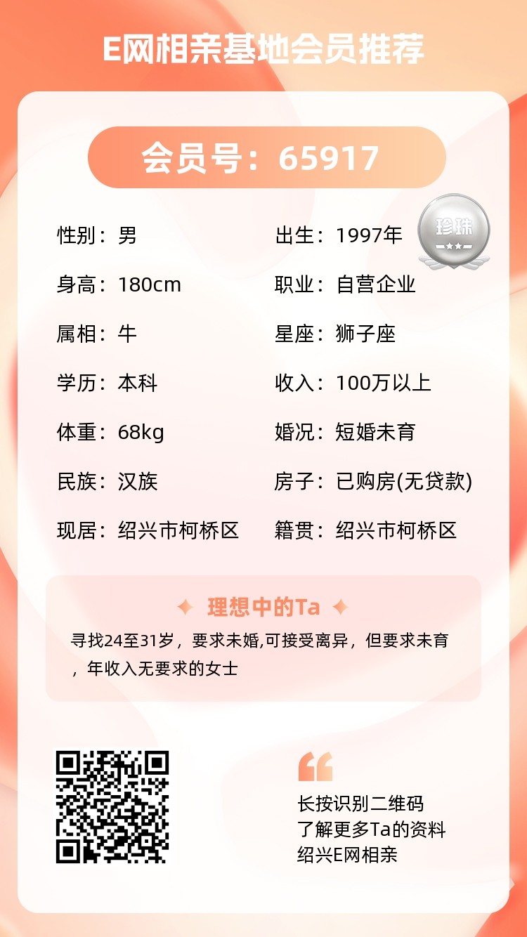 他想找31岁以下,未婚或短婚未育,户籍不限的女生,想认识他可以私聊楚楚姐+65917