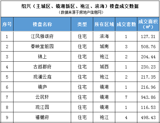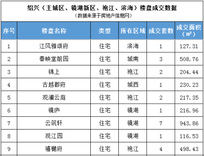 日成交丨2月9日绍兴(越城区)商品房网签22套