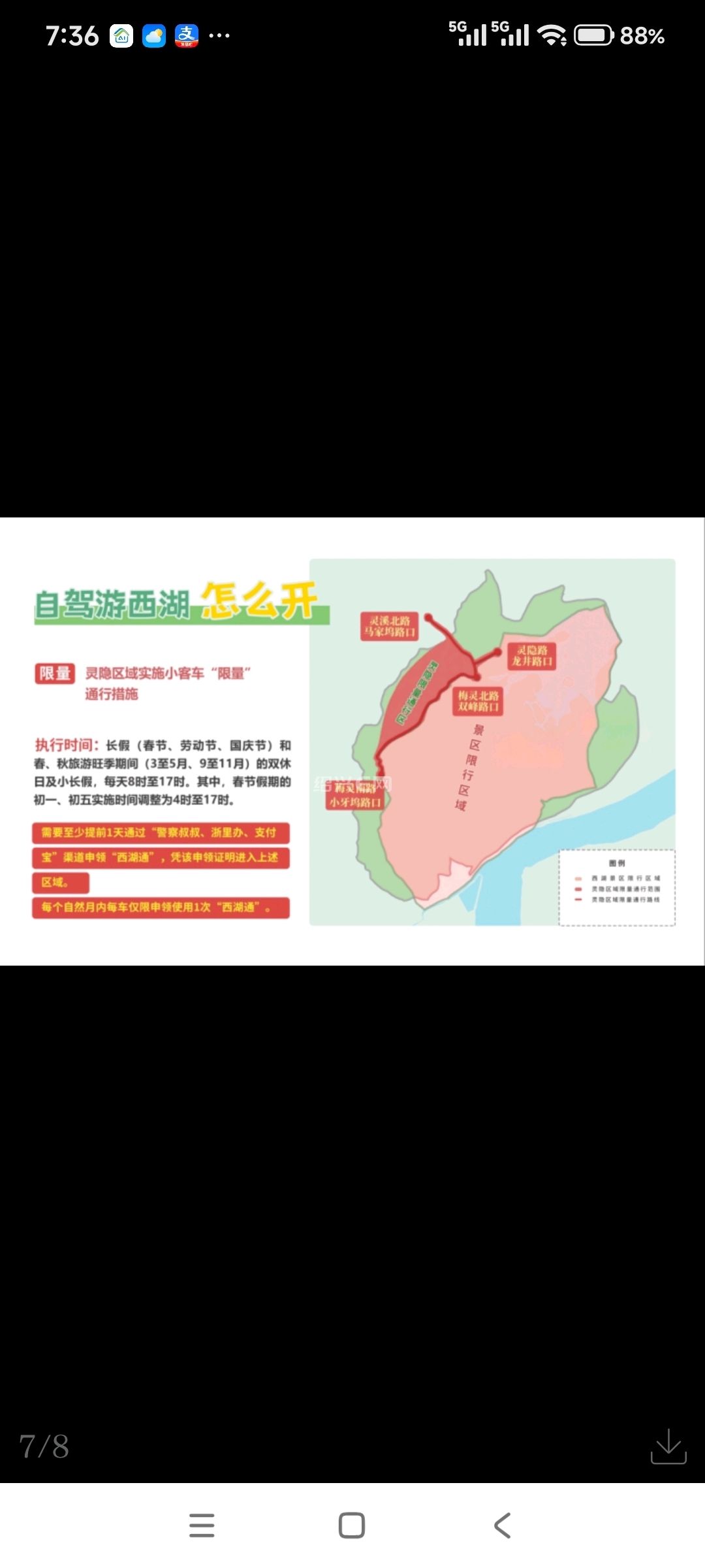 小客车进入上述区域,需提前1天(特别注意,不可当日申领),通过“警察叔叔、浙里办、支付宝”渠道申领“西湖通”,凭申领证明进入上述区域,每个自然月内每车仅限申领使用1次。
