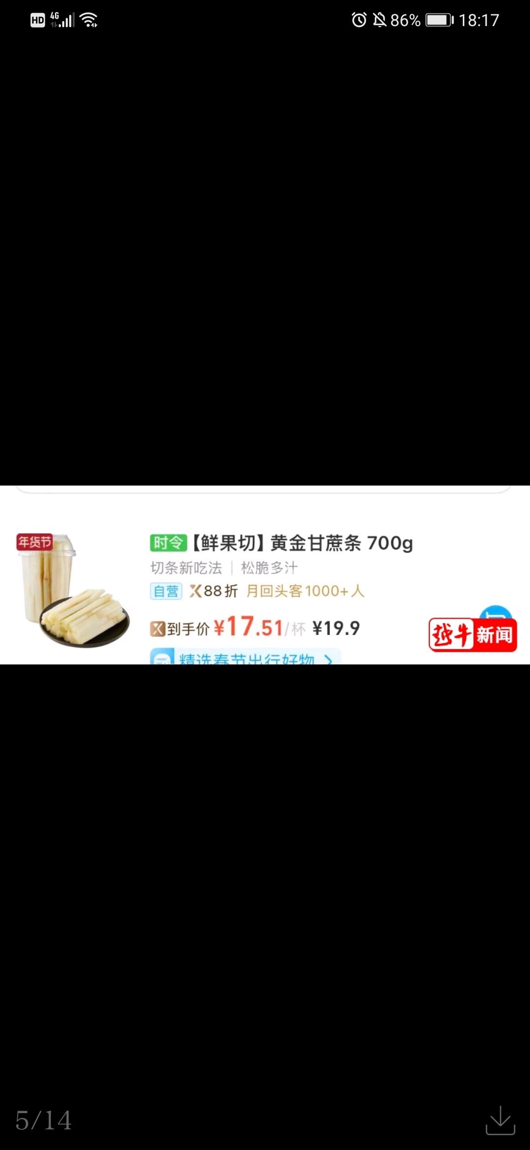 某水果店同品种“黄金手撕甘蔗”标价5.98元/斤。