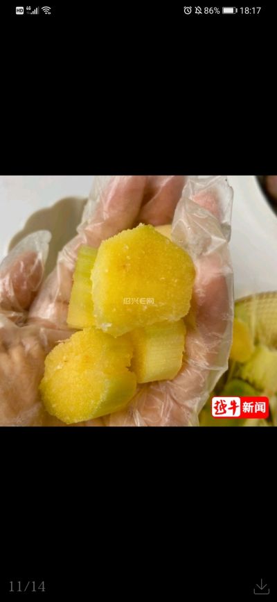 网友晒出“黄金甘蔗”果肉,色泽金黄。
