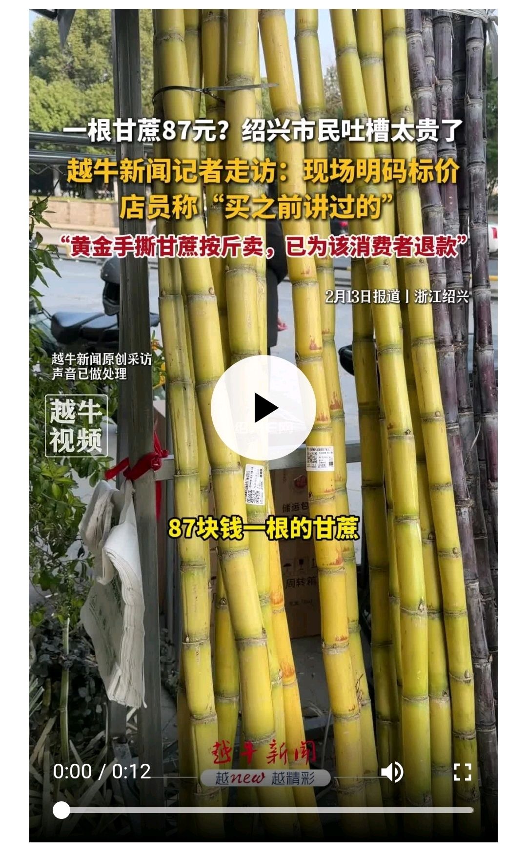 一根甘蔗87元,商家说“明码标价”,消费者说“被刺了一刀”。这场争议的症结究竟在哪?