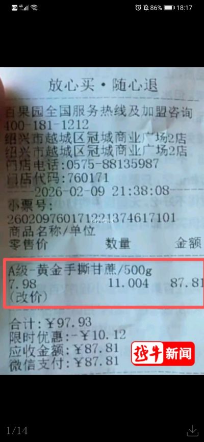 越牛新闻记者随后表明来意,店员也就近日的“高价退款”风波作出回应。“那位顾客购买时,我们明确告知了价格,还现场手撕给他看了果肉。”该店员解释,“他可能以为跟普通的青皮甘蔗一个价,买完发现贵了,心里有落差。”