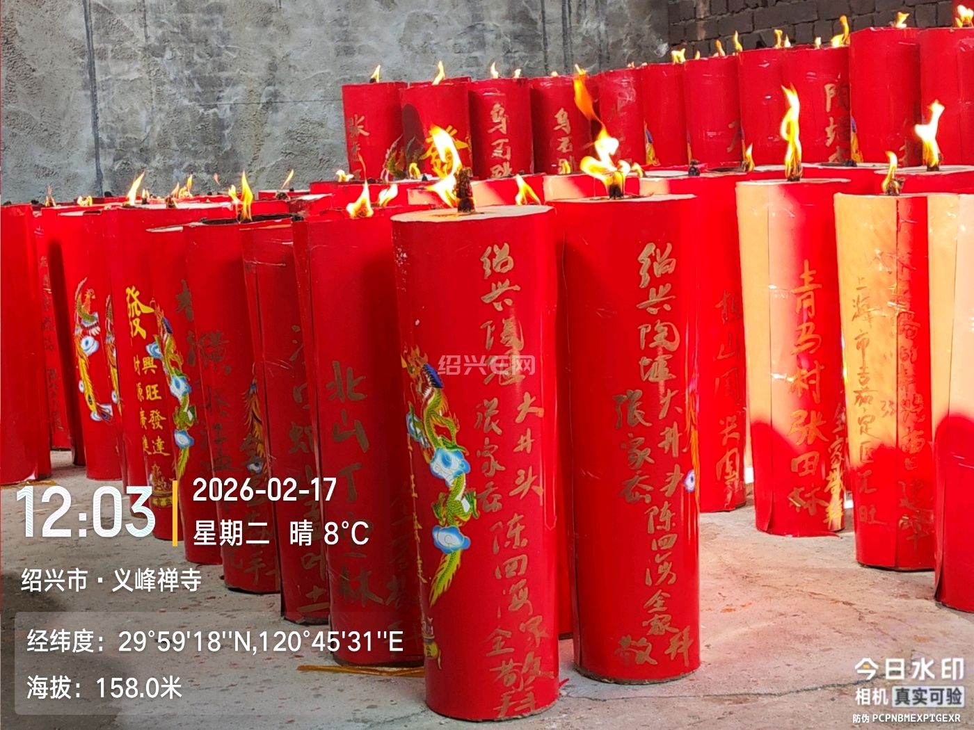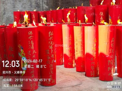 今天是正月初一,早上一大早,去庙里祈福的人可谓是络绎不绝!看这满架子的蜡烛,帮忙的人说都已经换过好几批了,早上刚开门时,点蜡烛还得排队