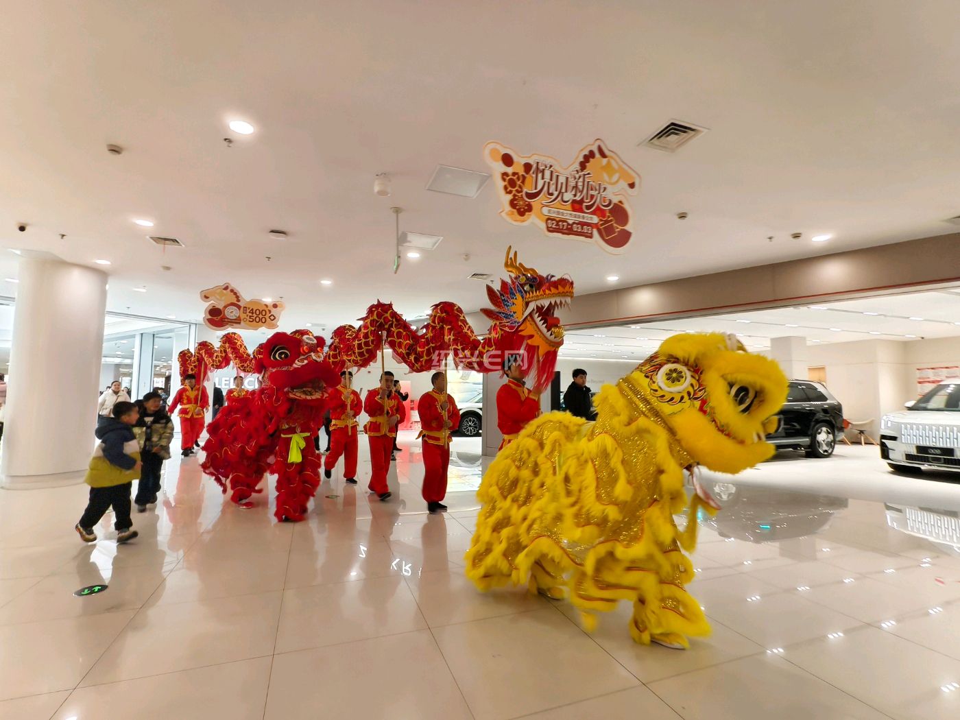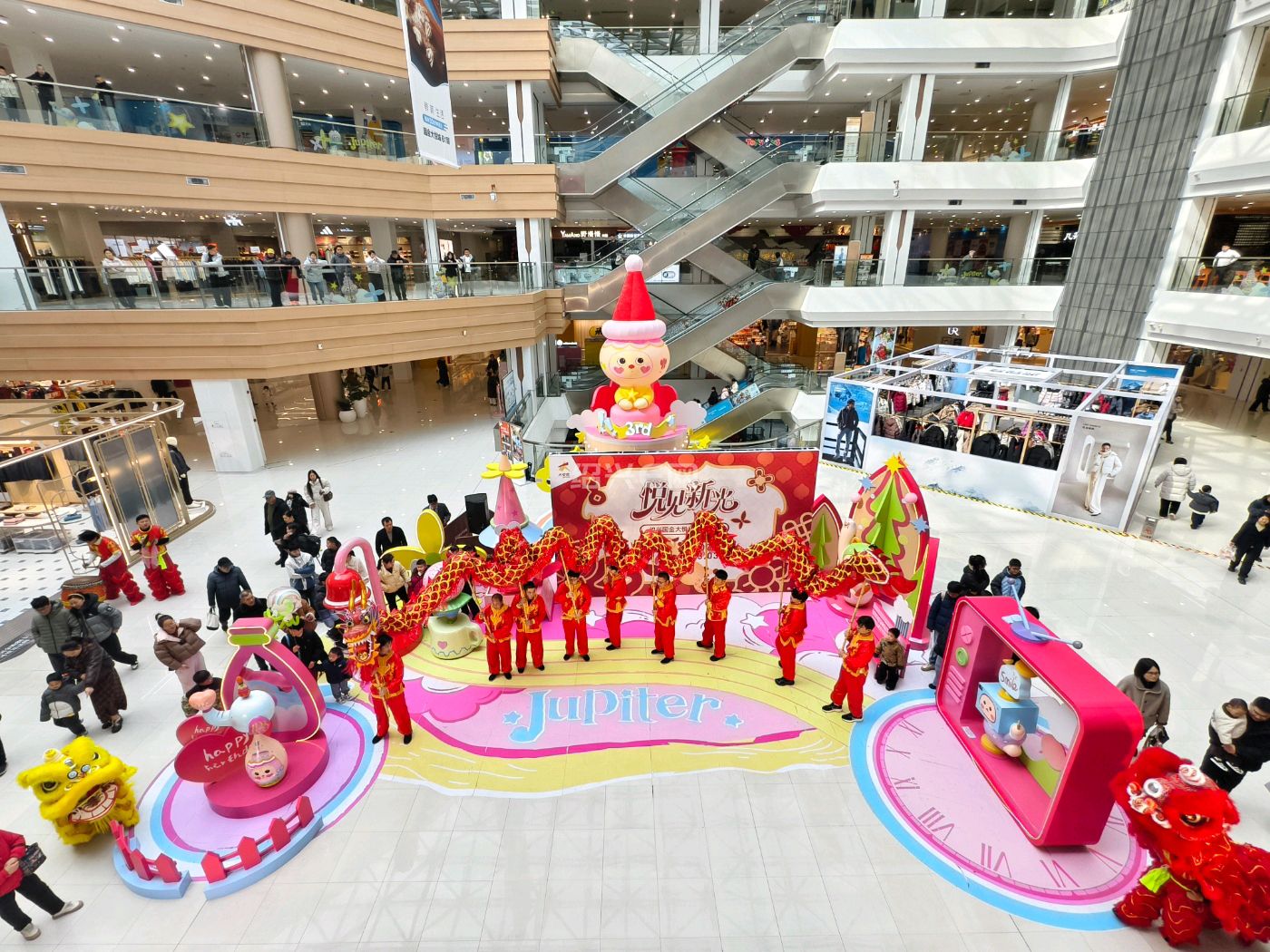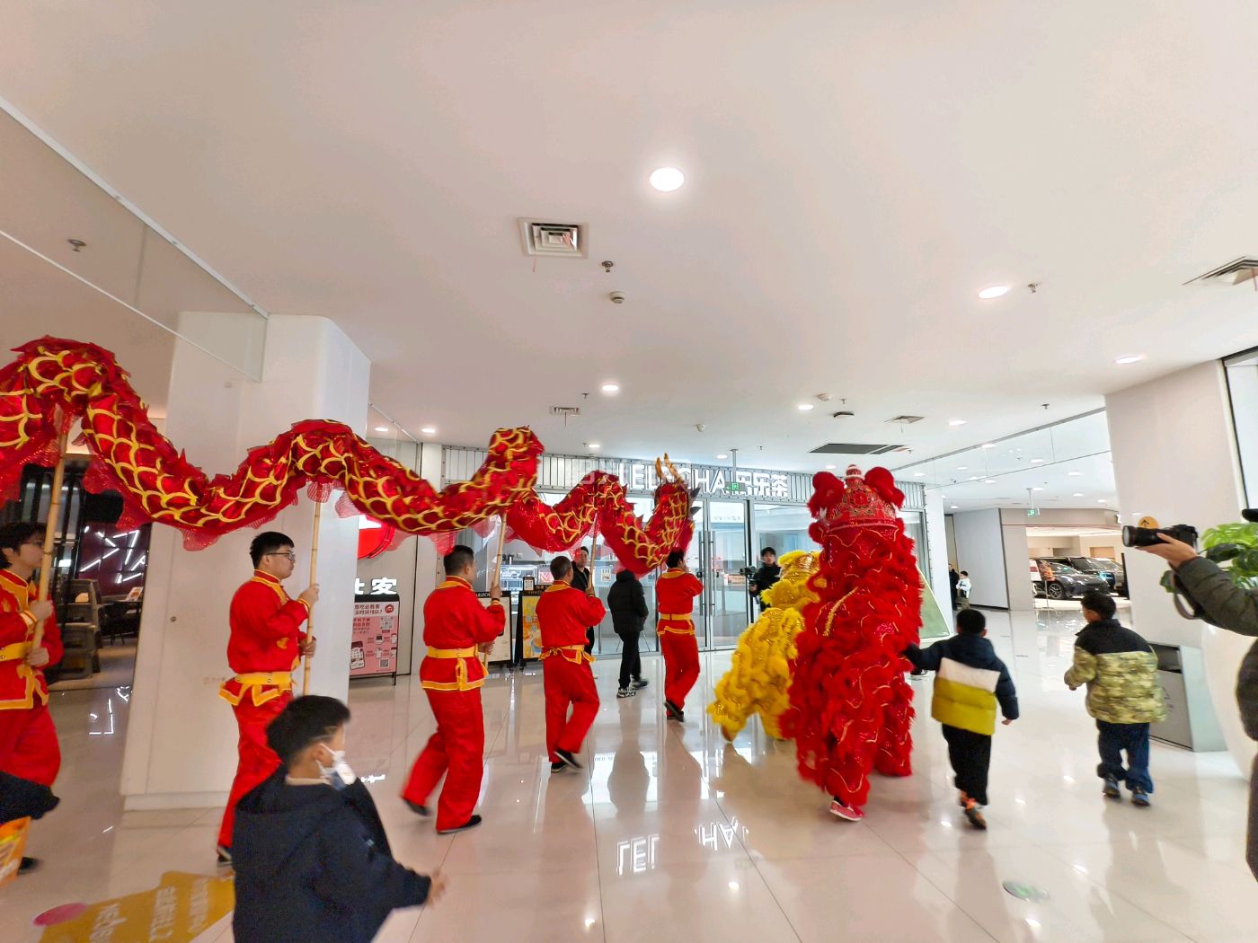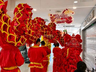 商场里舞龙舞狮好热闹