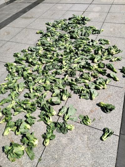 今年的蔬菜真便宜。像青菜萝卜的话,卖到一块多1块钱一斤。都没人要。邻居老头卖不掉就晒青菜干了。