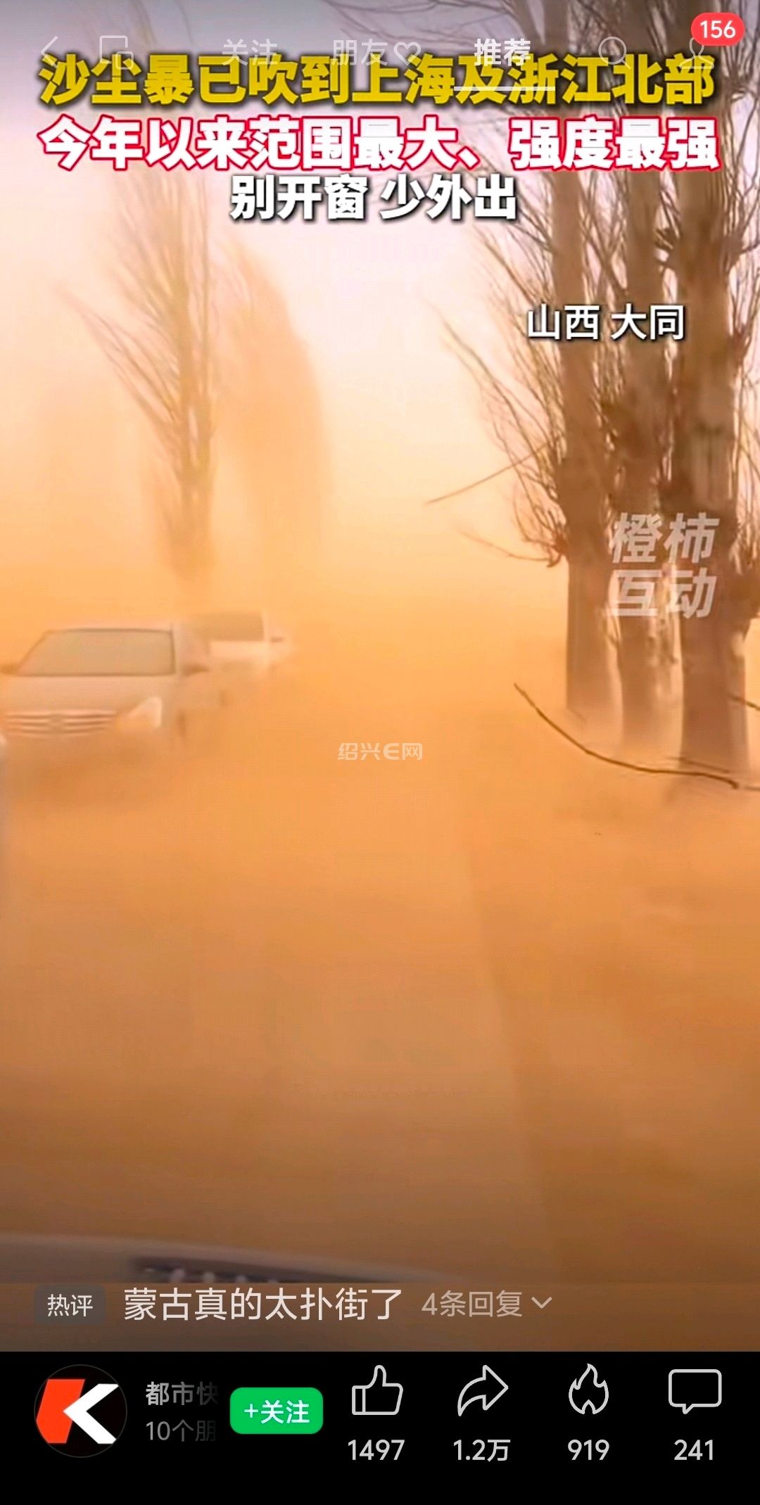 沙尘暴来了,晚上关窗吧