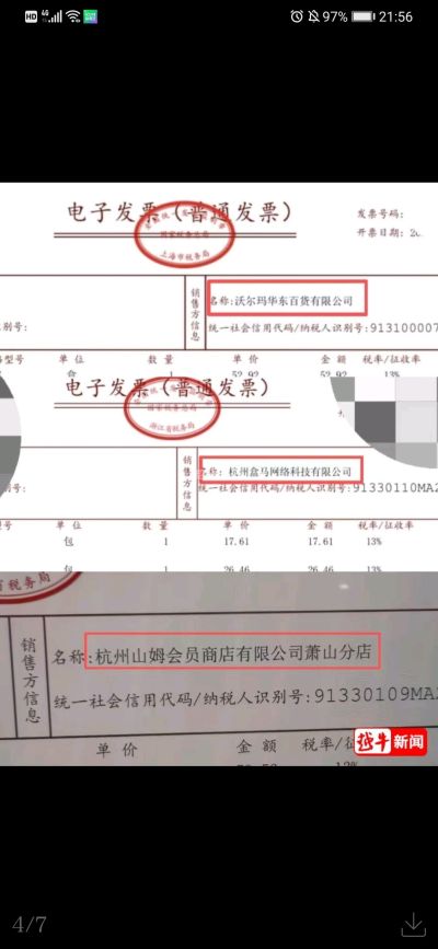 例如,盒马开具的发票抬头为“杭州盒马网络科技有限公司”,而山姆超市的部分发票则显示为“沃尔玛华东百货有限公司”或“杭州山姆会员商店有限公司萧山分店”。