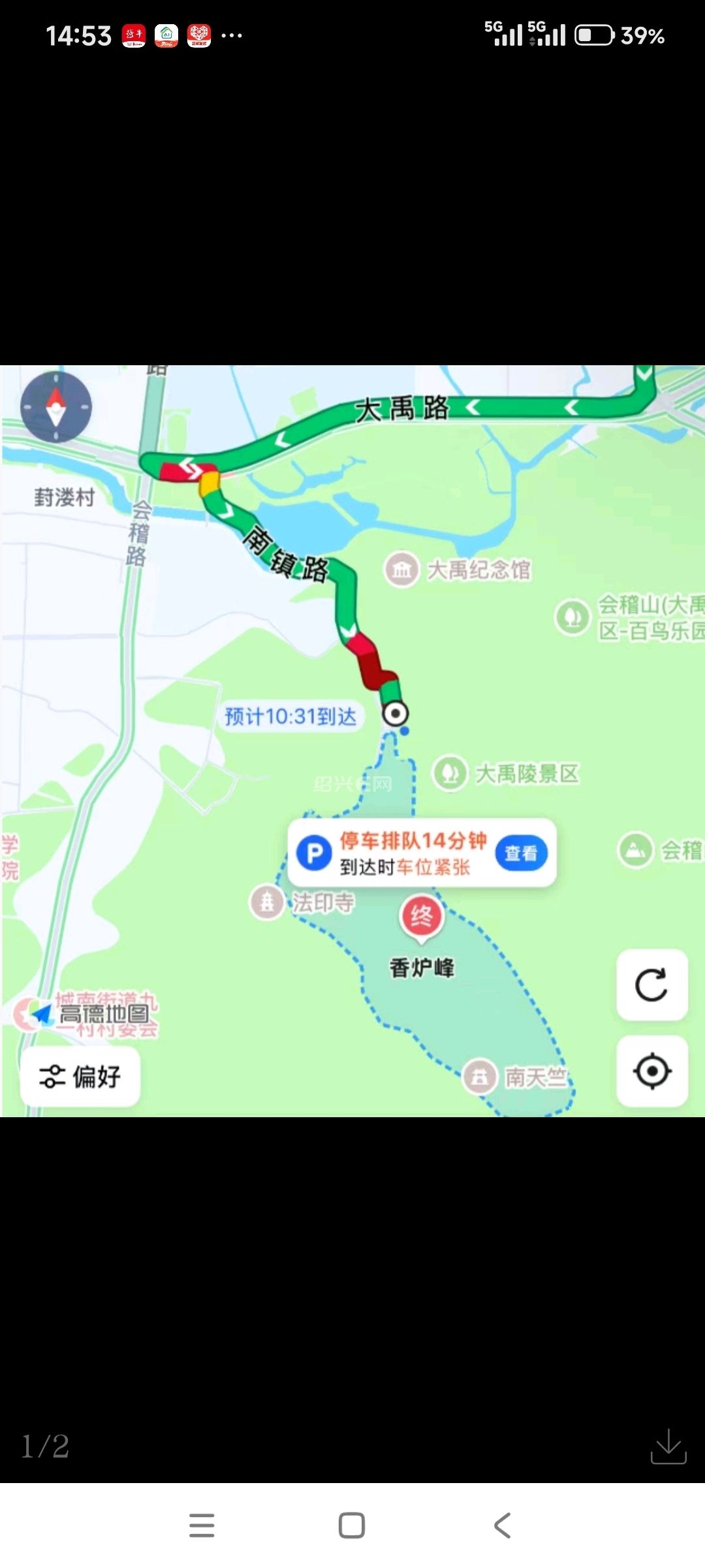 大禹路与南镇路路段已出现明显拥堵