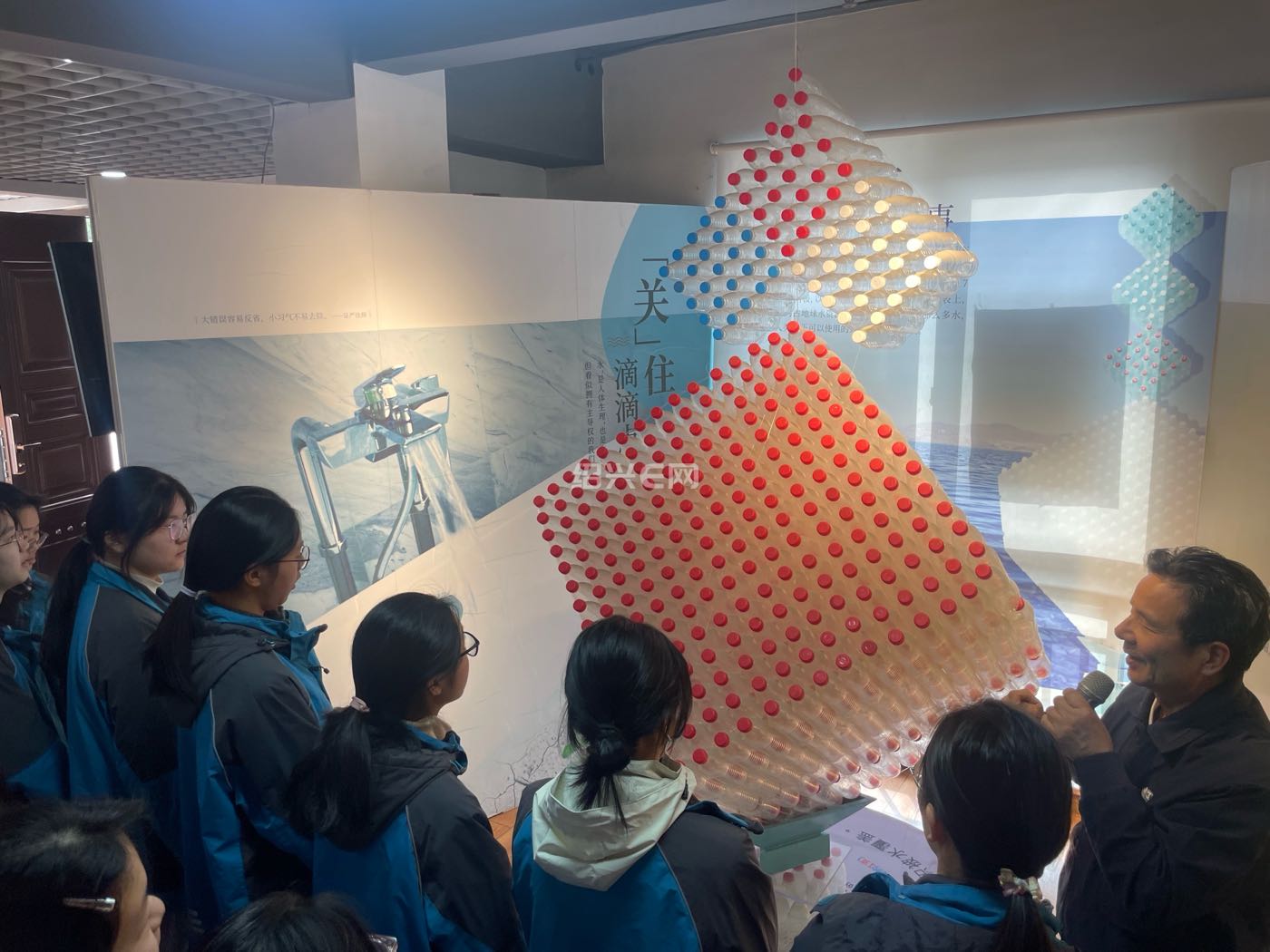在导览中心,一个由1000个塑料瓶搭建的“水立方”模型成为了视觉焦点。站在模型前,同学们直观地了解到,地球上可供人类饮用的淡水资源极其有限。志工老师借此呼吁大家要“惜水如金”,将节水意识落实到日常生活的每一个细节。