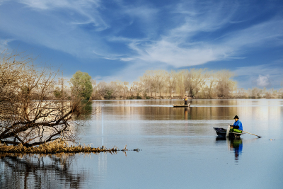 一汪碧水映云天,渔舟轻摇,把生活过成了诗。紫黄老师拍的好美!