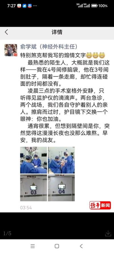 “尽管是通宵的手术,但想到隔壁那个同样在奋战的身影,漫漫长夜似乎也变得不再难熬。”俞学斌感慨道。