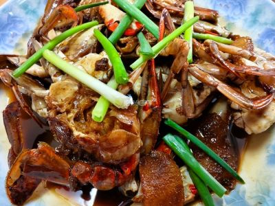 红烧牛腩,炒抢蟹,白切鹅肉,腌菜冬笋,文武笋,豆腐鹅血羹,黄豆芽,青菜