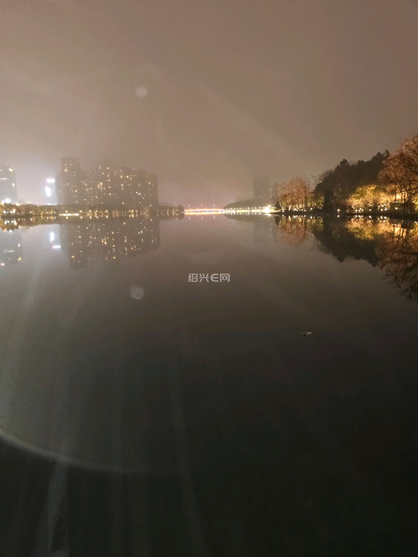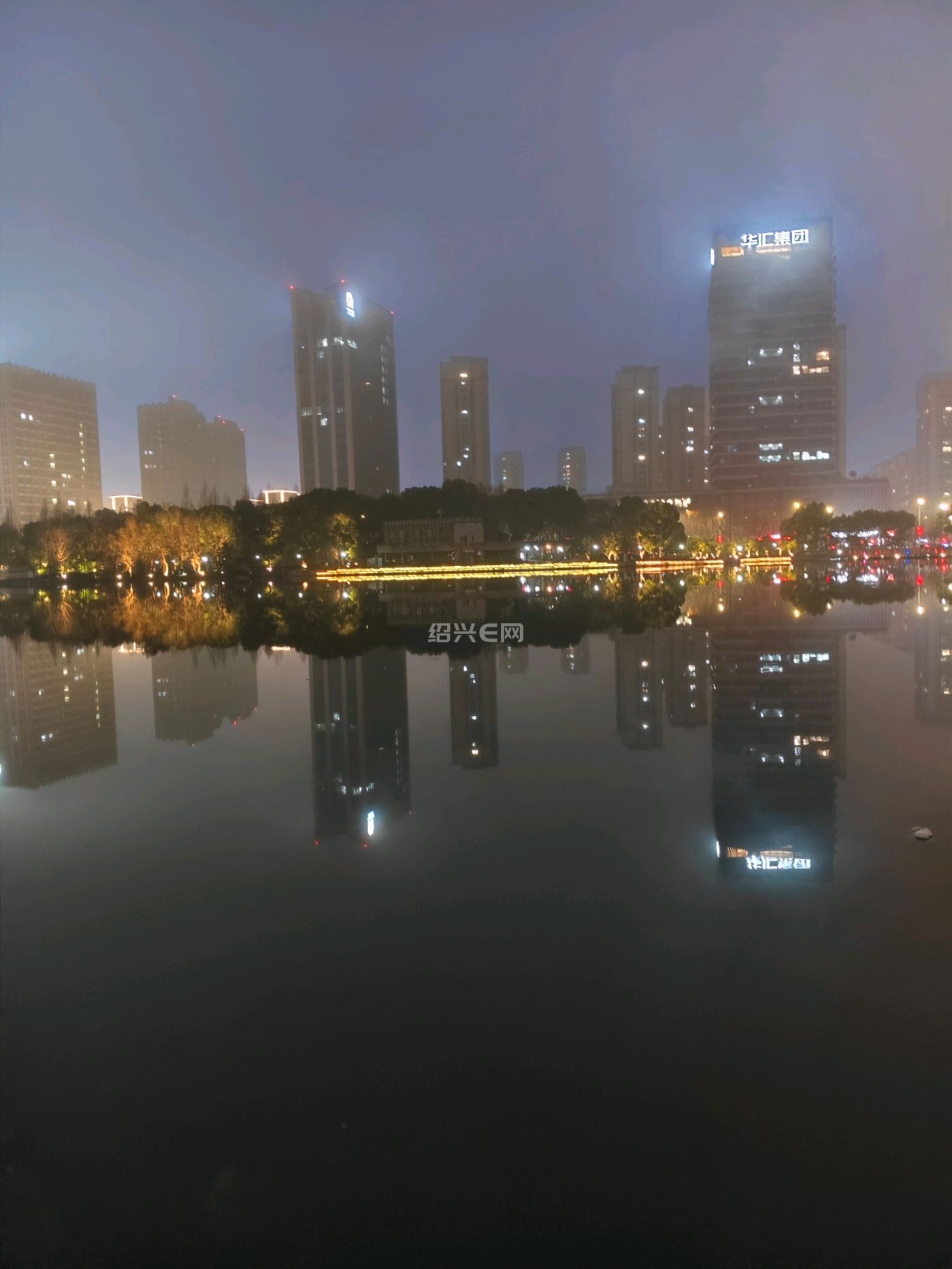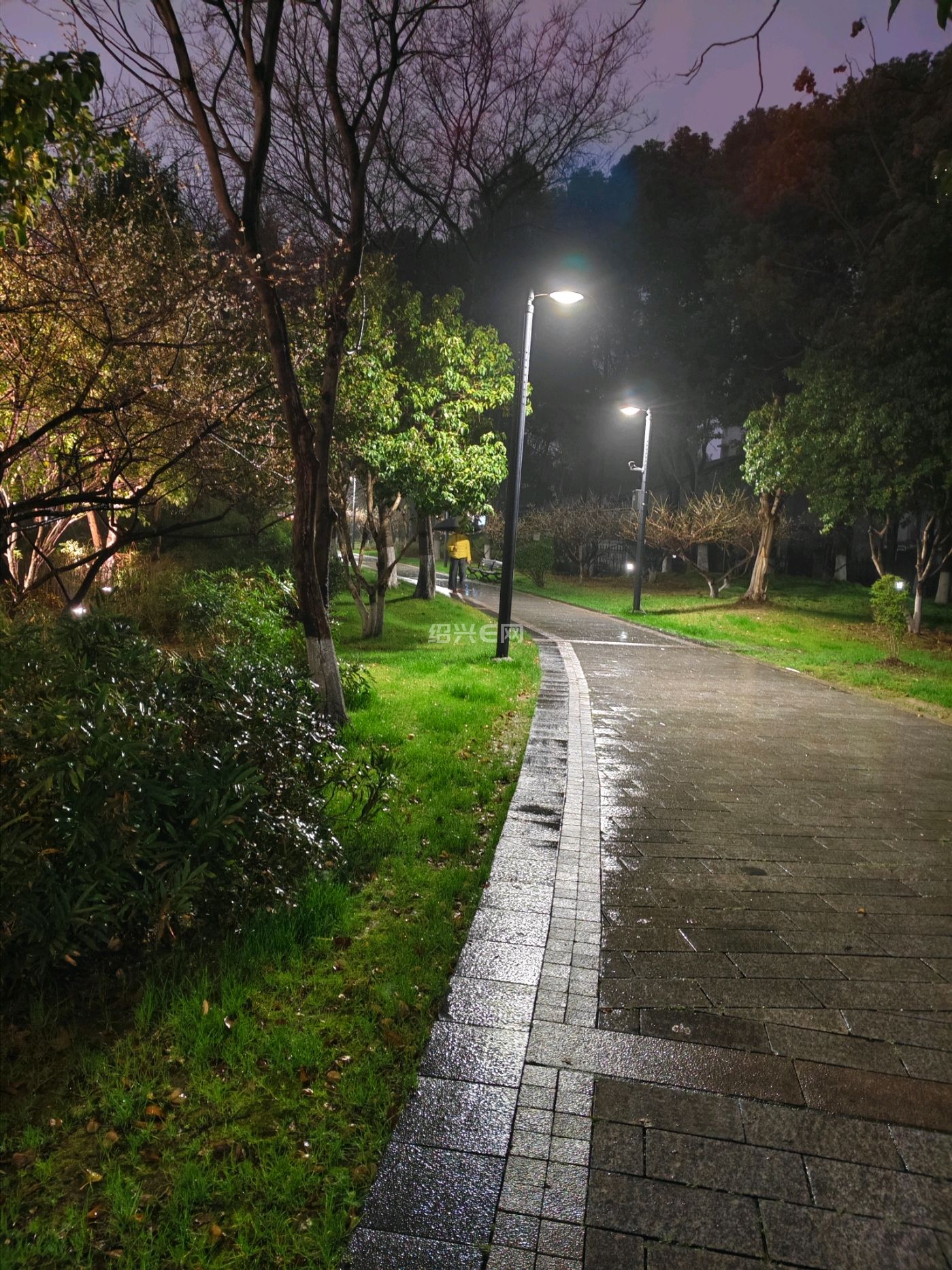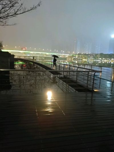 :今天蒙蒙细雨下了一整天了,空气中充满了潮湿的味道,夜晚本来很热闹的梅山江两岸,人都不见了,要是在天气好的时候,这里散步、唱歌、练乐器的人可不少呢[表情] !
