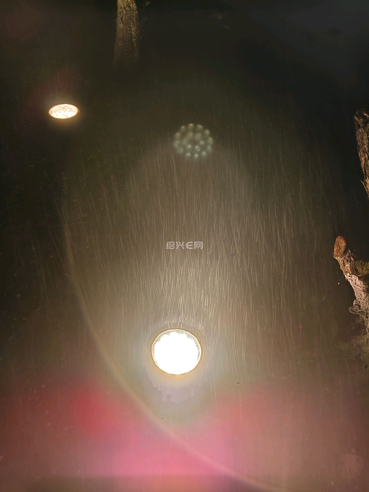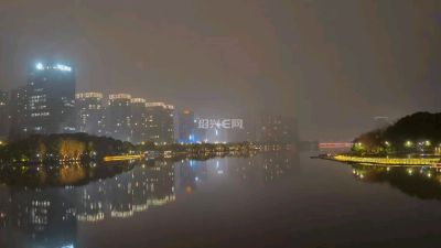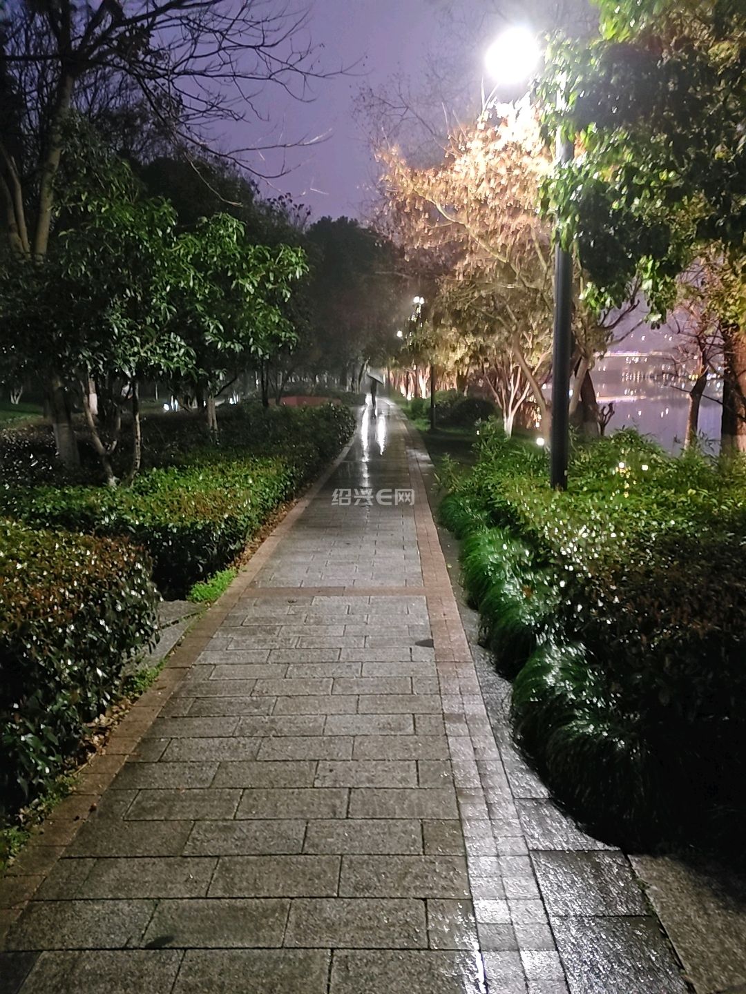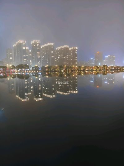 :今天蒙蒙细雨下了一整天了,空气中充满了潮湿的味道,夜晚本来很热闹的梅山江两岸,人都不见了,要是在天气好的时候,这里散步、唱歌、练乐器的人可不少呢[表情] !